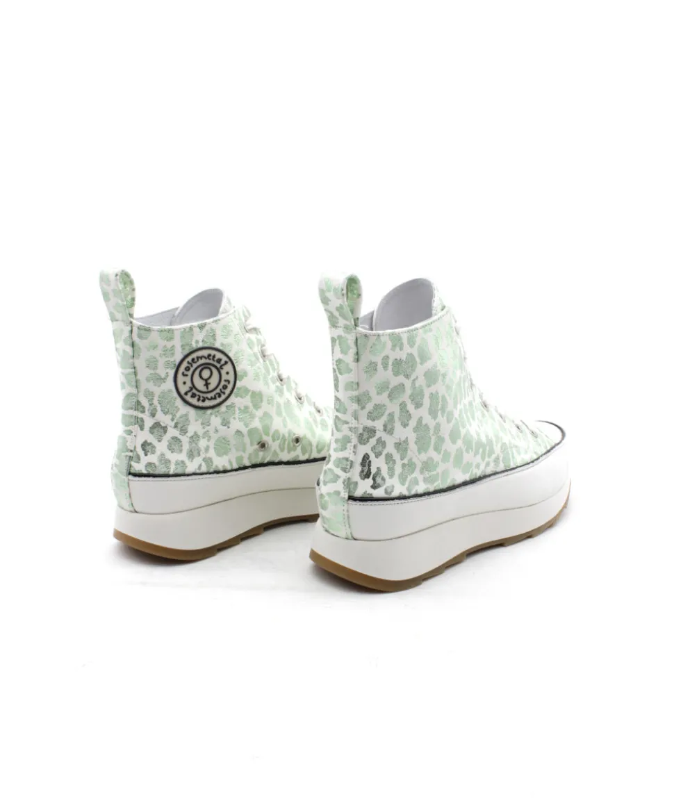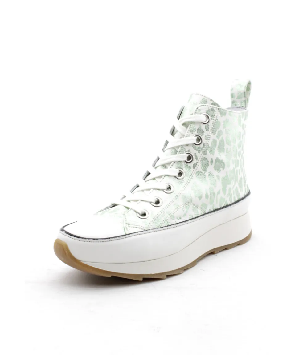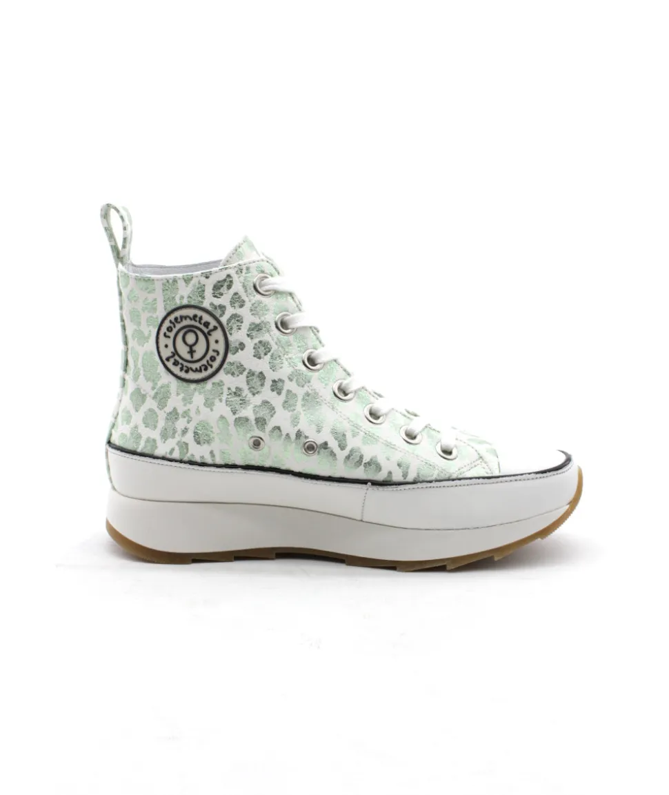 FRASNE H0756N, une basket ultra-originale pour un look tendance, voici la création de ROSEMETAL. Sur une grosse semelle compensée et une palette de couleur disponible, la mode est à vos pieds ! Une semelle blanche imposante, un dessus en cuir imprimé léopard vert,… pas de doute c’est le must-have de cet saison ! Confortable et looké, on aime le logo sur le côté pour le petit plus !