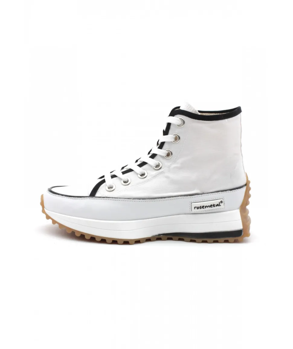 Nouvelle couleur pour ce modèle atypique de la collection ROSEMETAL. FREBUANS se décline maintenant en textile bleu marine ou blanc sur sa semelle blanche imposante. On aime le dessous en caoutchouc marron ultra-tendance et sa ligne branché, sa semelle en picot est creusée au milieu et remonte sur le contrefort pour finir le style de cette sneaker montante.