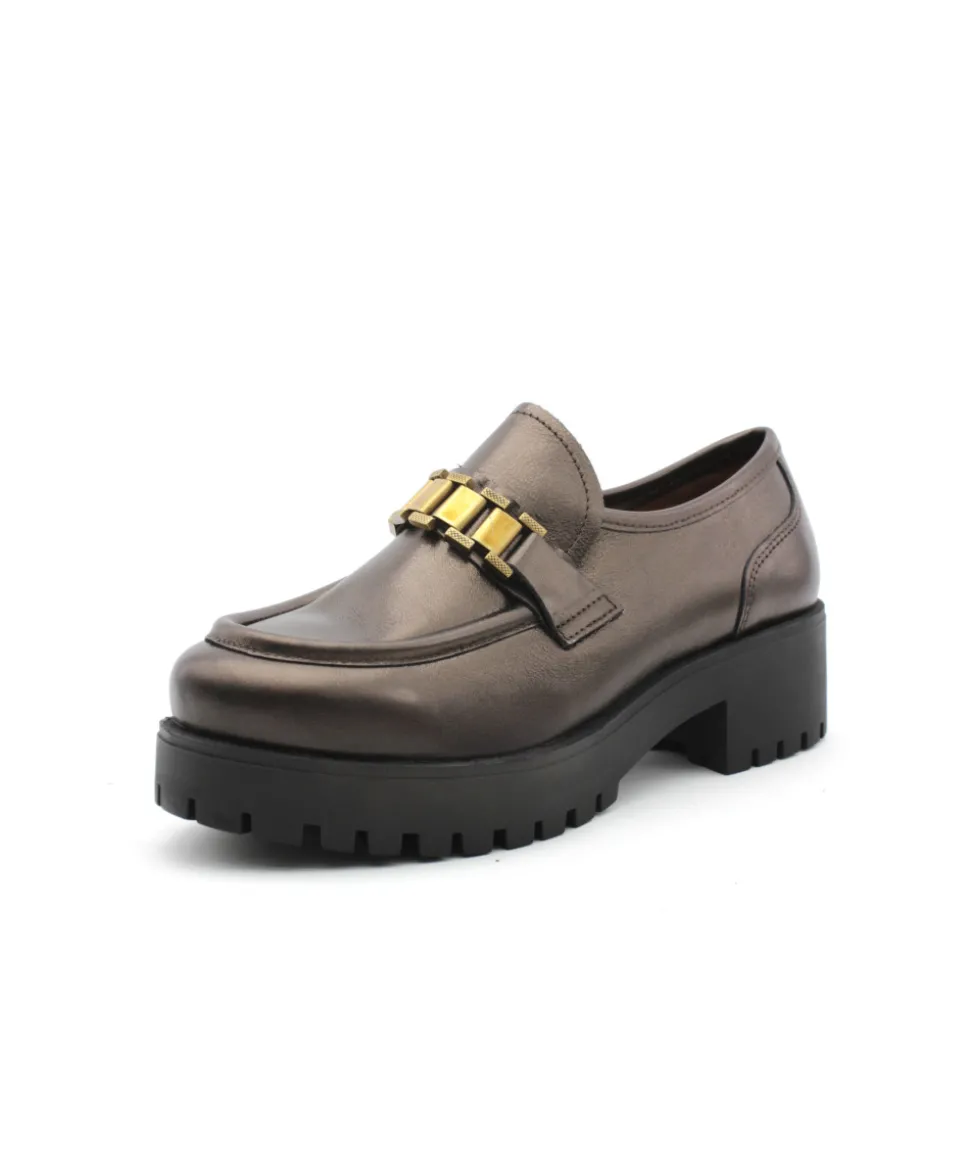 À la recherche d’un mocassin atypique, une couleur hors norme qui pourra facilement s’associer à vos tenues ? Ne cherchez plus… Voici le modèle JARNO J2174E en cuir bronze de la maison Rosemetal. Un mocassin en cuir confortable, assis sur une semelle en gomme épaisse de 4 cm pour un amorti optimal. Féminine avec son bijou tendance et rock avec son look extrême, cette chaussure vous fera craquer tous les matins…