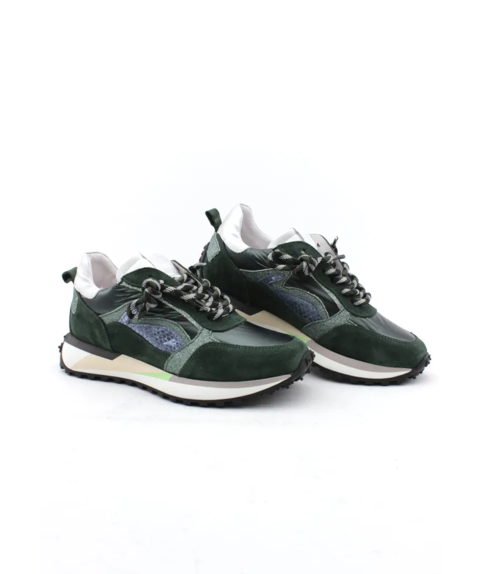 Un mix originale de matière et de couleur pour un rendu atypique ! Voici l’une des créations de la maison Semerdjian avec la basket TYLA 8474 et son cuir vert. Des empiècements en cuir imprimé écaille et bien évidement… la marque de fabrique de la marque : les paillettes ! Montée sur une semelle débordante ultra-tendance en gomme, elle apporte beaucoup de confort à la marche tandis que son lacet original ajustera votre pied dans la sneaker.