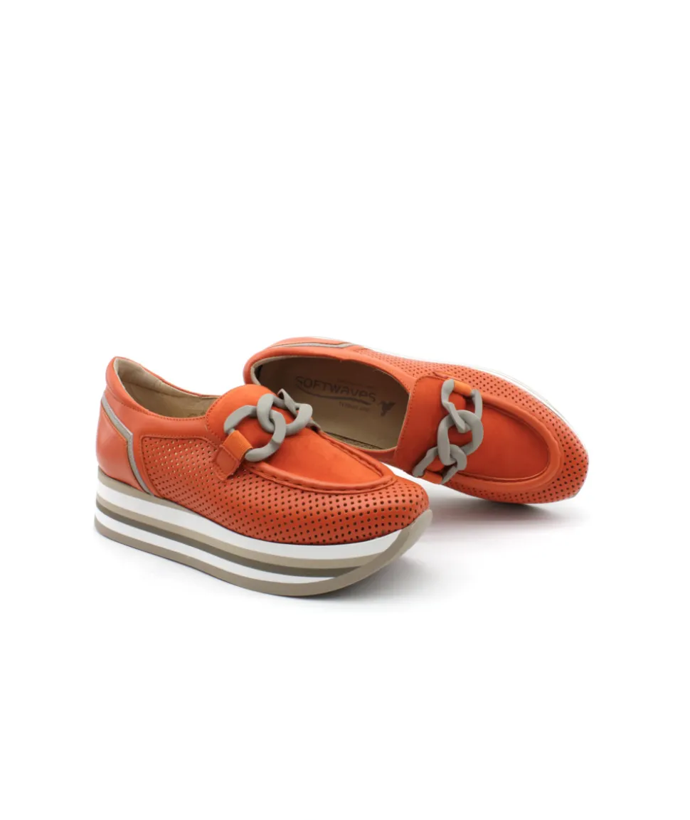 SOFTWAVES propose le mocassin 7.78.56/10 en cuir couleur orange pour les femmes soucieuses du bien-être de leurs pieds mais sans négliger pour autant le style. Véritable chaussures confortable et élégante, cette nouveauté associe une semelle de basket sur une forme mocassin, du jamais vu jusqu’à présent ! Ses élastiques situés sur le coup du pied vous offrirons beaucoup de maintien lors de la marche.