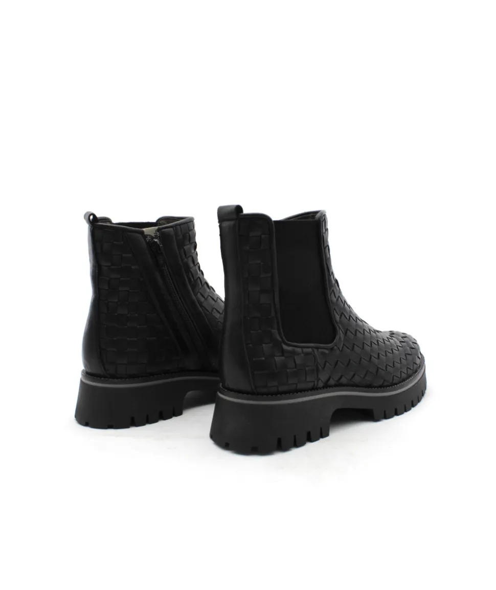 Softwaves vous présente sa dernière création, une magnifique bottine 8.36.33/00 VEGA en cuir tressé noir. Montée sur une semelle en gomme qui offre un superbe amorti, ces boots s’emparent de toutes les dernières tendances avec un cuir tressé que seul les meilleurs artisans sont capables de faire. Un zip intérieur apporte quant-à lui beaucoup de praticité lors de l’enfilage.