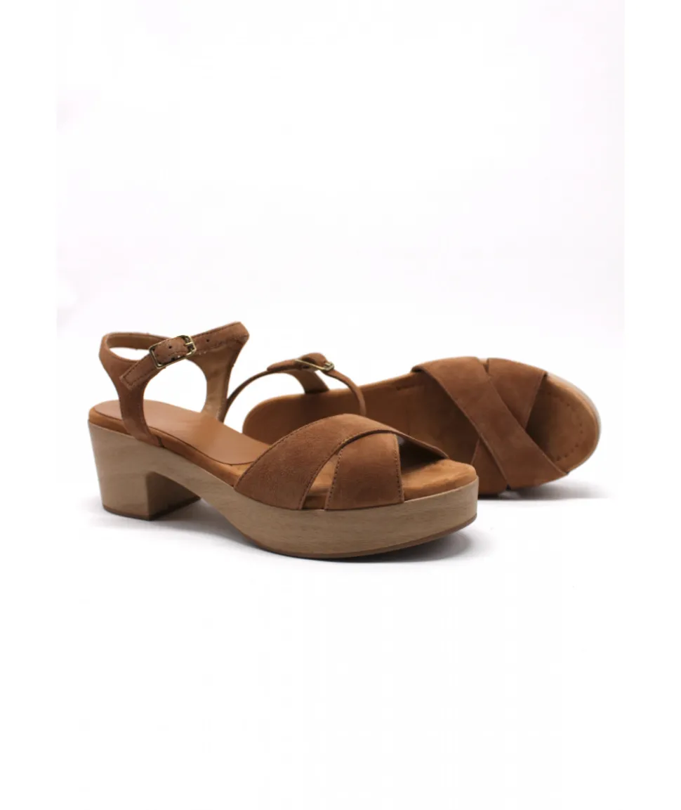 Nouveauté cette saison pour la maison espagnole UNISA. Le modèle IRAM fait son apparition dans une déclinaison en cuir velours marron, cannelle et noir. Avec une boucle réglable sur le talon et des brides croisées à l’avant, le maintien est garanti. Bloc en PU de 6 cm de talon et 3 cm de plate-forme. Les sandales IRITA sont l’accessoire idéal pour cet été.