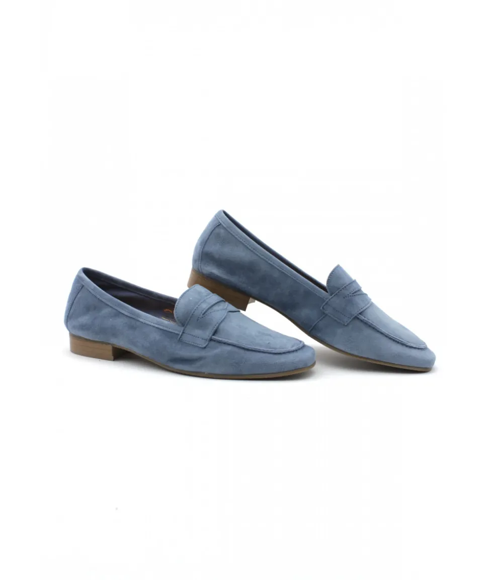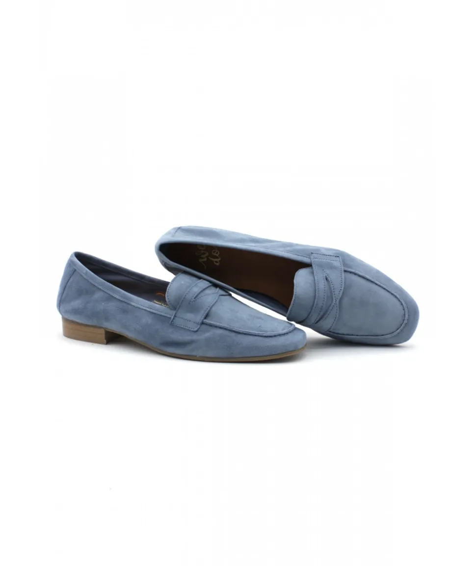 WE DO, une nouvelle marque chez L’Empreinte Chaussures, propose cette saison un mocassin très féminin en cuir velours bleu jeans, bleu marine, bleu électrique et vert, décoré d’un empiècement en cuir chic sur le dessus du plateau.