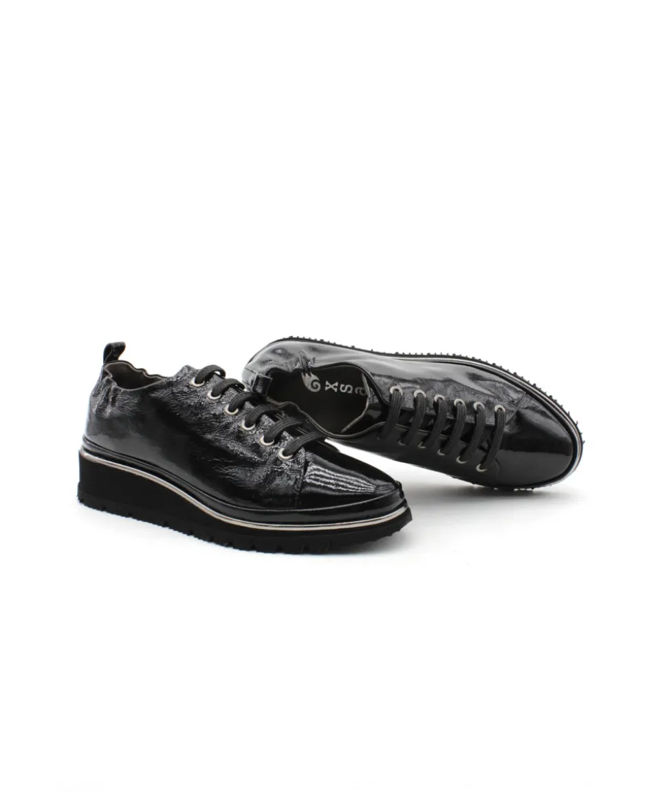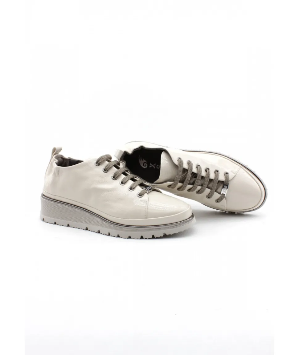 Magnifique basket de la maison Italienne XSA. Aussi élégant que le reste de la gamme, le nouveau modèle 9721 s’équipe d’un cuir haut de gamme couleur vernis beige ou noir, offrant tout de suite beaucoup de souplesse et de bien être. Aussi à l’aise que dans un chausson grâce à sa semelle compensée de 4cm en gomme légère, il n’y a pas de doute, cette chaussure pour femme deviendra rapidement la star de votre shoesing !