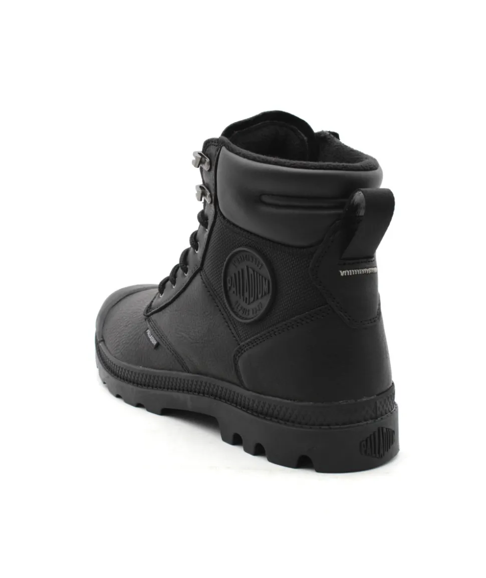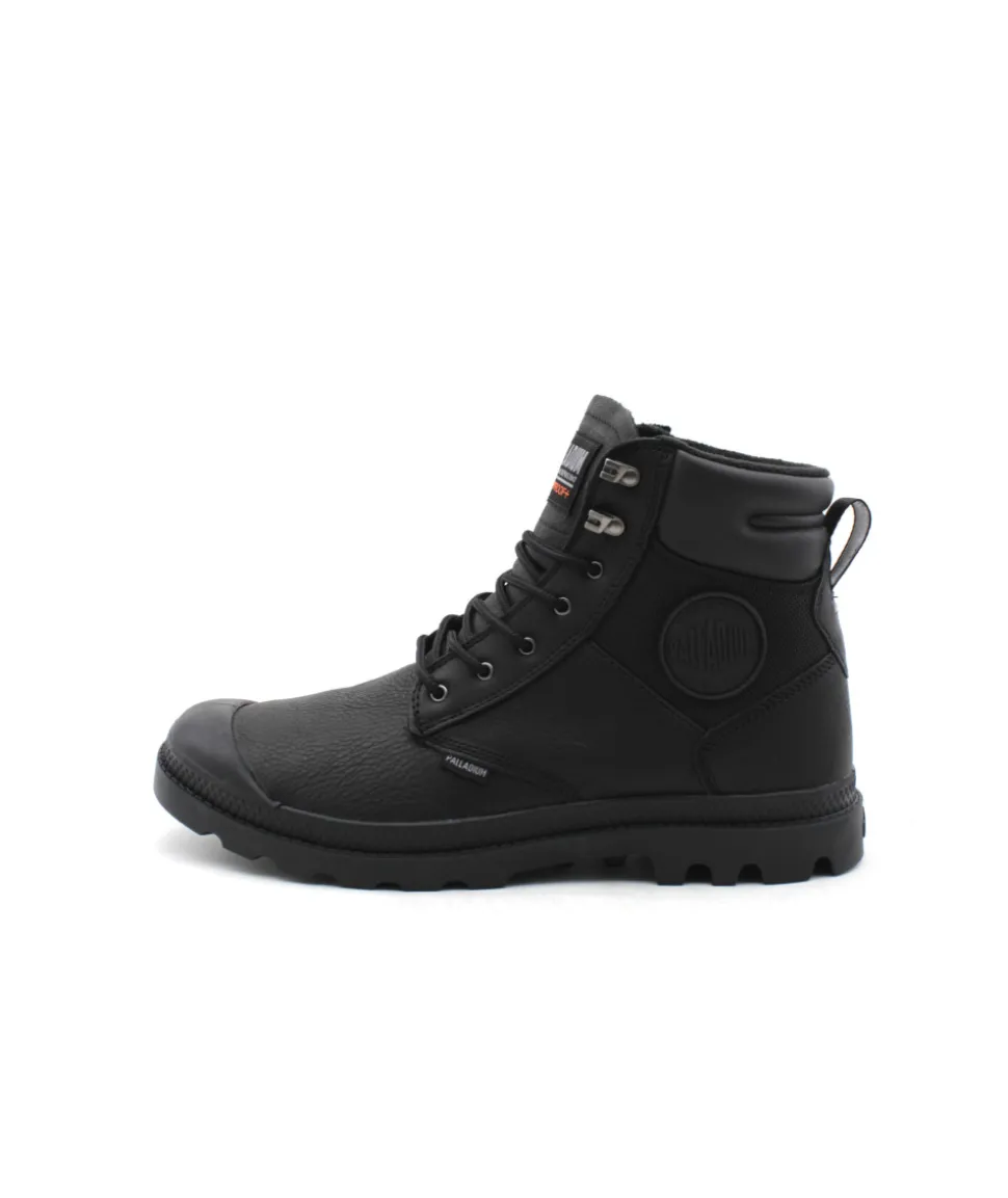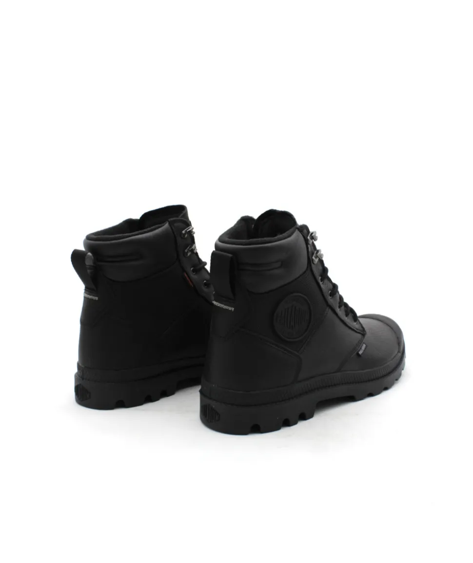 Nouvelle version pour la forme très connue PAMPA de chez Palladium. Cette fois la version PAMPA SHIELD se décline en cuir noir grainé et arbore fièrement les logos de la marque sur la languette, les côtés et le talon ! On aime la sobriété de cette chaussure qui bénéficie de la technologie WATERPROOF +, une garantie de garder les pieds au sec. N’attendez plus pour profitez de sa semelle en EVA ultra-légère !