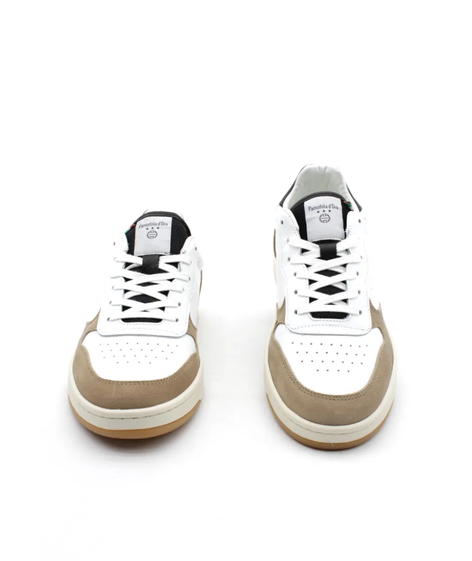 Une nouvelle forme fait son entrée cette saison dans la collection Pantofola D’Oro avec le modèle LIONI UOMO LOW en cuir blanc. Véritable sneakers urbaine, elle saura s’adapter à chacune de vos tenues grâce à son look casual. Ses empiècements en cuir velours taupe lui offre beaucoup d’élégance tandis que ses détails sur la languette, sur le côté ainsi que sur le contrefort mettent en avant la qualité de finition apportés à chacun des modèles de la marque Italienne.