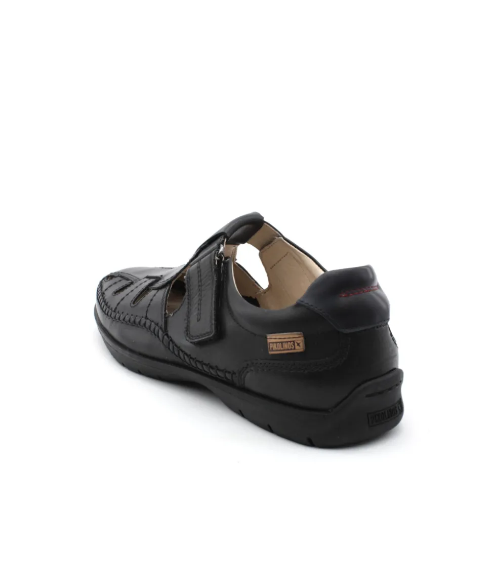 À la rencontre d’une forme bien connue de la maison espagnole PIKOLINOS et son modèle MARBELLA M9A-0051 en cuir noir. Une chaussure ajourée pour une version estivale qui s’associera à vos tenues élégantes. Grâce à sa semelle en gomme souple, le confort est l’un de ses meilleurs arguments pour vous faire craquer, rajouter à cela la fermeture par velcro qui facilite l’enfilage… Et HOP, plus besoin de faire ses lacets. Le modèle parfait pour les hommes à la recherche d’un look sport chic pour la ville.