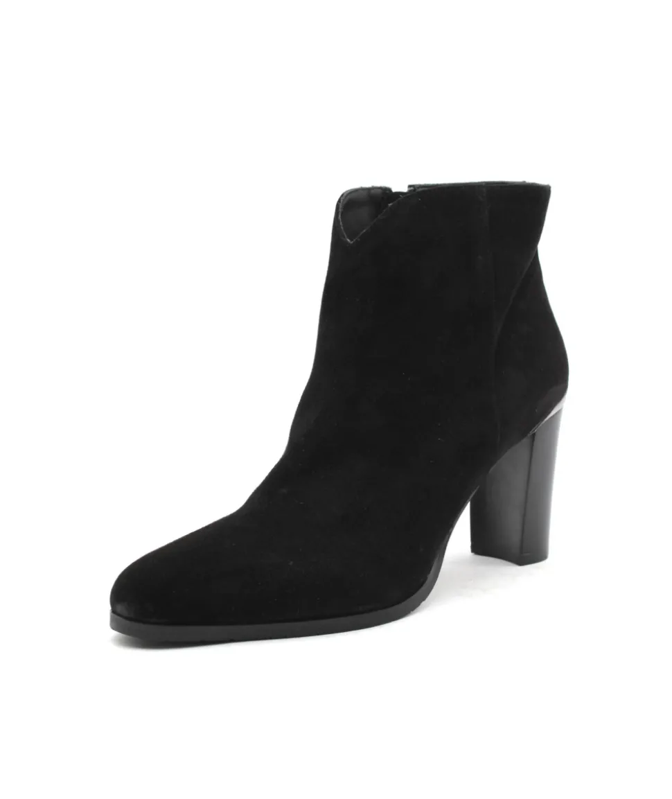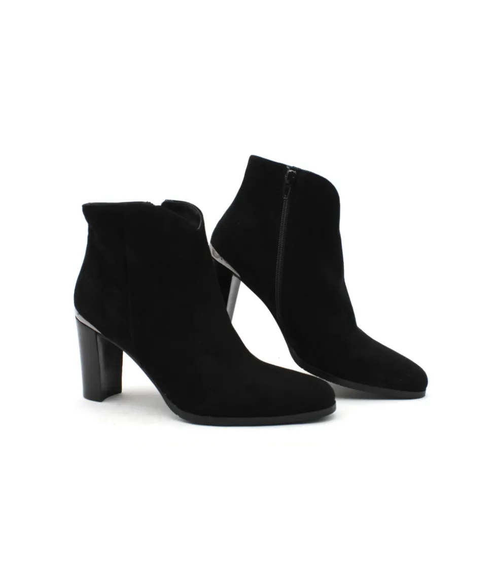 Sobriété et élégance, deux qualificatifs que la bottine VERO 104 n’a pas volé pour séduire les modeuses. Le galbe parfait de sa tige décoltée sur l’avant, son insert argenté à l’arrière et son talon de 7 cm pour affirmer votre féminité. Légère et confortable, cette chaussure ne vous quittera plus des pieds… À porter avec un jeans, une robe, une jupe ainsi qu’avec de nombreuses couleurs, cette boots en cuir velours noir s’accorde à de nombreuses tenues.