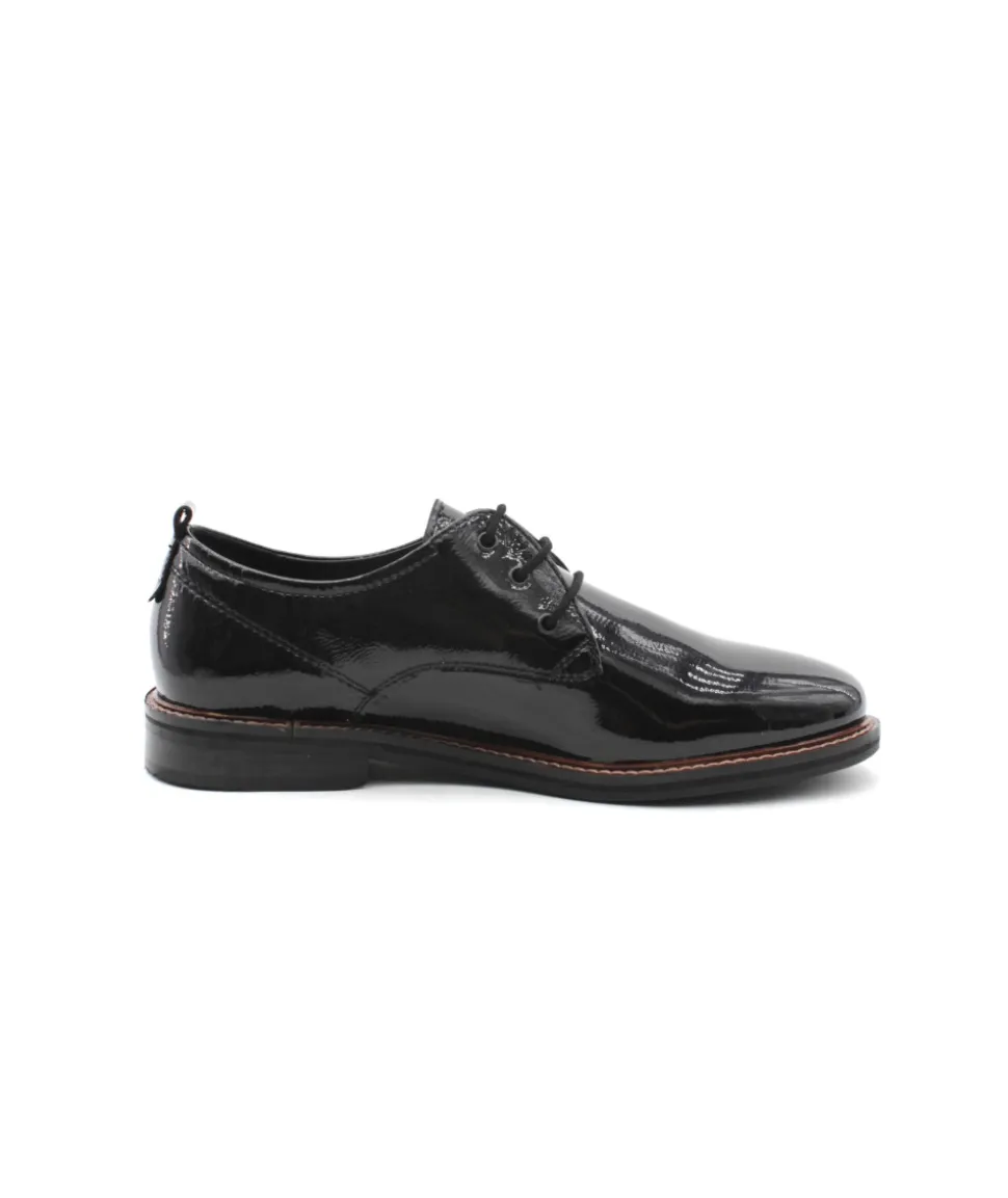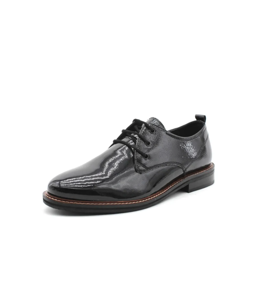 Élégant à regarder et doté d’un confort qui convaincra les femmes particulièrement exigeantes : la chaussure à lacets Kent 12-11202-11 vernis noir de la maison ara. Ce modèle, avec un cuir fin et un laçage discret, fait de cette chaussure légère et élégante fait quelque chose de très particulier. Le point fort absolu en matière de confort est la fonction Highsoft, une combinaison d’un dessus souple et d’une semelle avec un insert spécial en mousse au niveau de la plante du pied. Elle s’adapte parfaitement au pied et lui offre soutien et flexibilité grâce à l’accueil en douceur de la voûte plantaire. Le petit talon bloc résistant à l’écrasement dans une optique de couche de bois ainsi que la forme légèrement pointue allongent la jambe de manière raffinée. Avec sa largeur F, cette chaussure à lacets convient particulièrement aux femmes ayant un pied fin. Cette chaussure élégante avec sa couture décorative s’accorde parfaitement avec de nombreuses tenues et fait battre le cœur des femmes. Ce modèle ne dispose pas d’une semelle amovible.