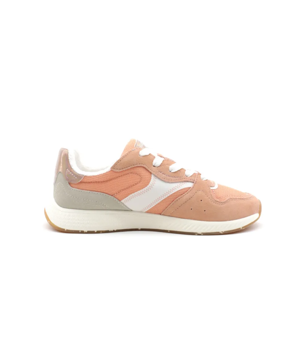 Armistice nous dévoile sa dernière création, moderne, dans l’air du temps et respectueuse de l’environnement. En effet la basket COOL RUNNER W s’habille d’un textile couleur abricot issu de matière recyclée. Légère et confortable, la sneaker affirme son look moderne et branché avec son super choix de mix matières et ses lignes originales. Sa semelle en gomme vous apportera quant à elle tout le confort souhaité.
