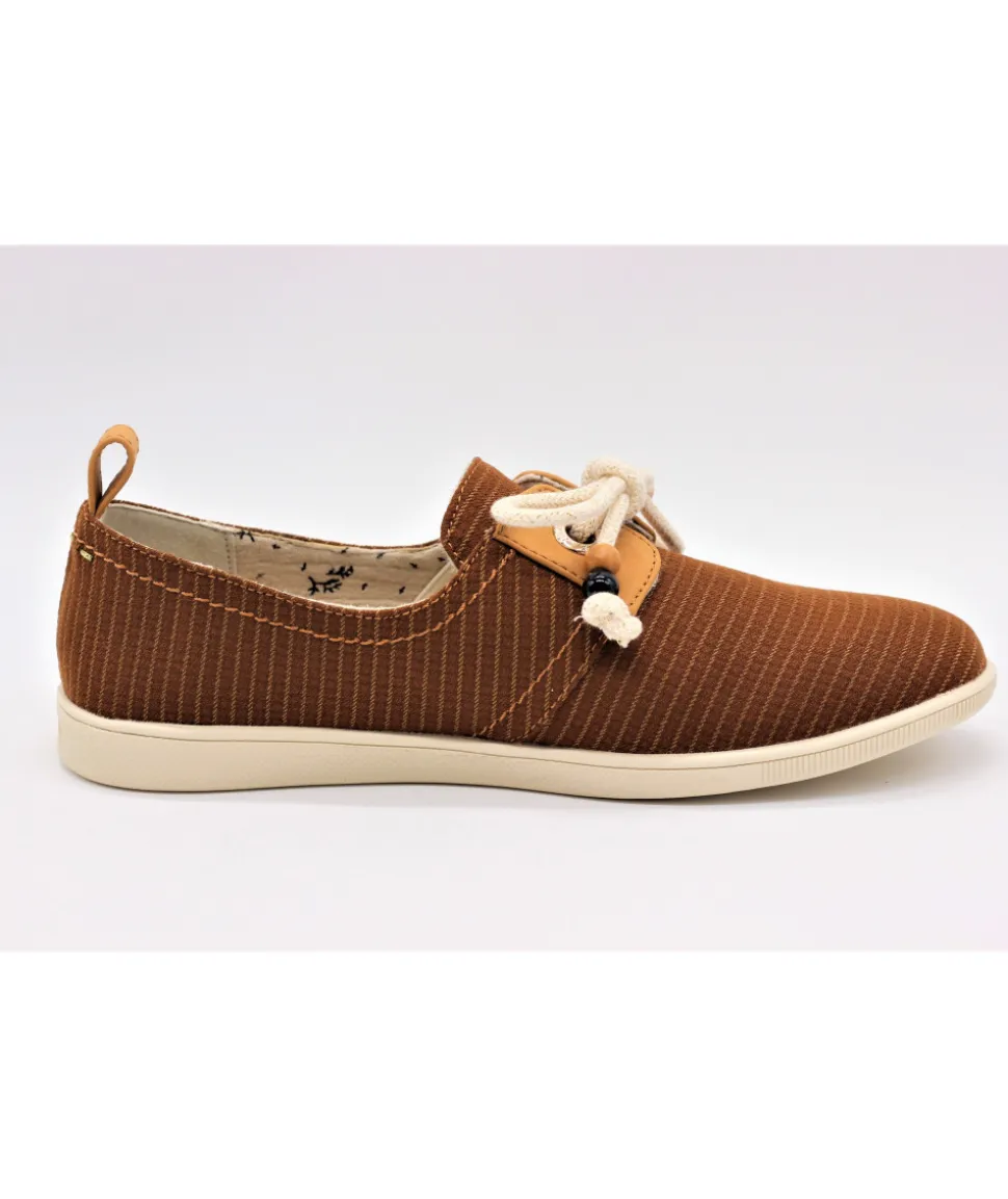 – Dessus en toile et fines rayures – Empiècements en cuir synthétique camel – Oeillets oversized – Lacets en corde et …