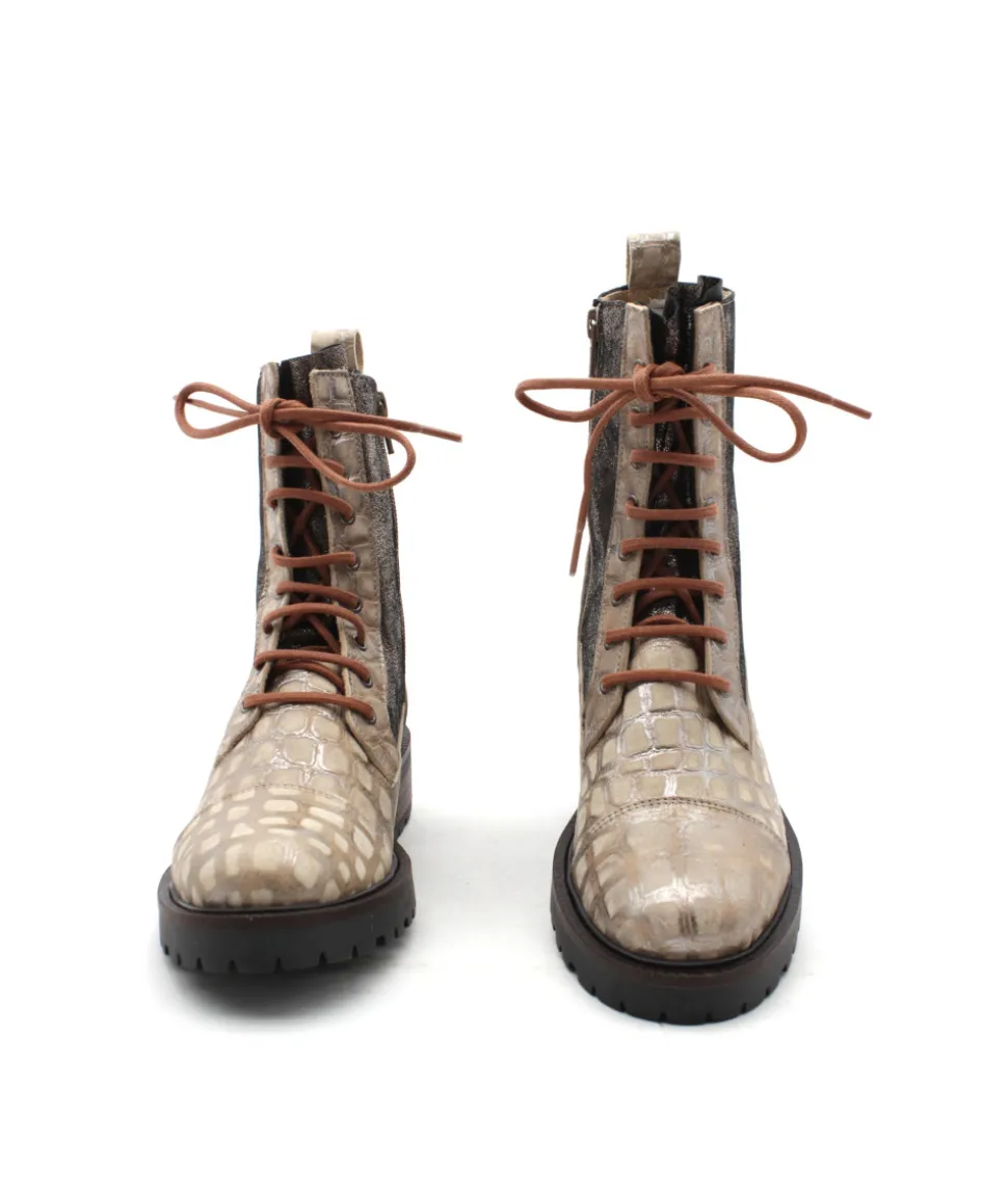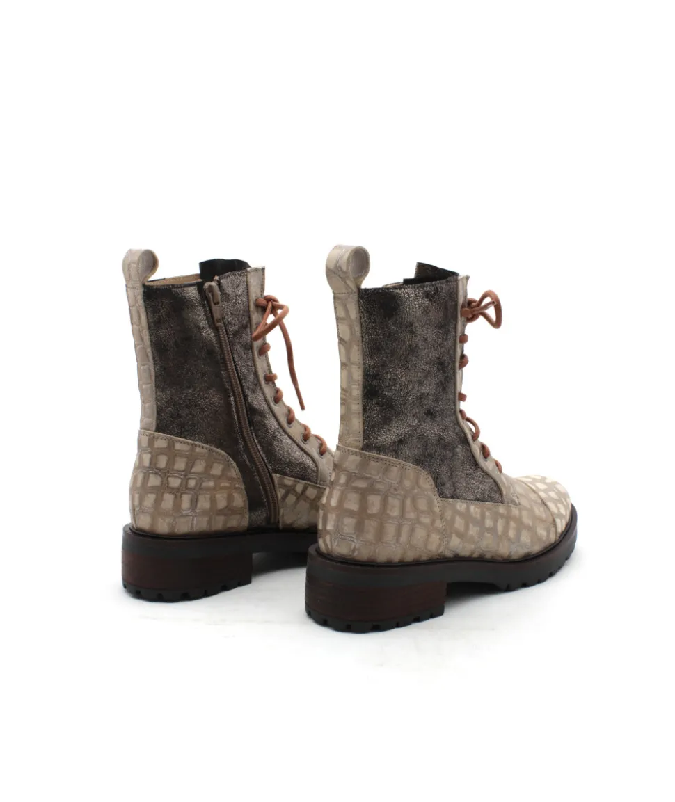 De retour cette saison, la marque Portugaise Casta propose une collection vitaminée avec des créations toujours plus originales… La bottine MOON n’y échappe pas avec sa coupe tendance, montée sur une semelle en caoutchouc confortable. L’originalité du modèle nous porte sur son cuir impression écailles de serpent couleur taupe, ses détails soignés comme sa tige en cuir métallisé, son lacet orange et son zip intérieur pour faciliter l’enfilage.