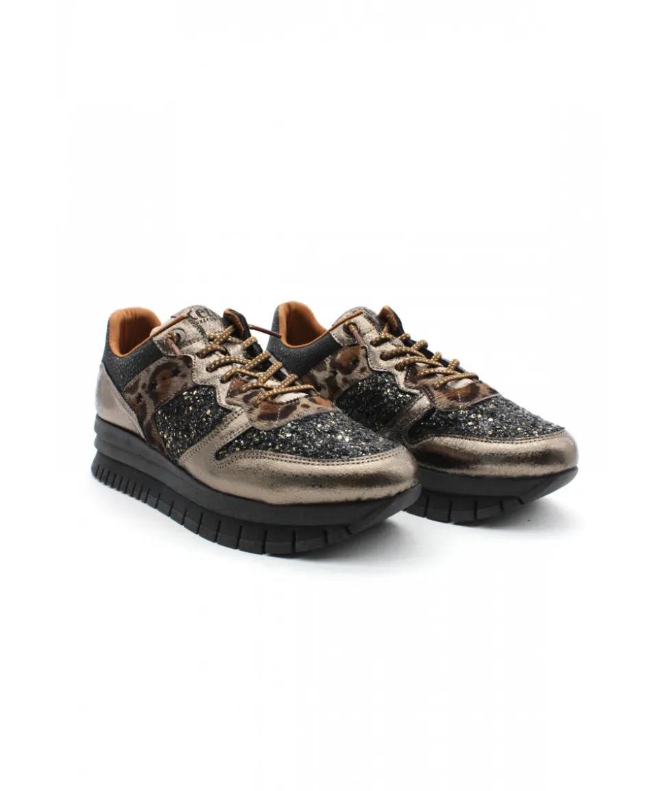 Nouvelle forme cette saison avec l’arrivé du modèle C1296 SRA EXP signé par la maison espagnole CETTI. Disponible en cuir bronze ou acier, cette sneakers tendance nous surprend par son joli mélange de matière et de couleur…. Avec sa touche de léopard, ses paillette et son cuir métallisé, cette basket habillera chacune de vos tenues.