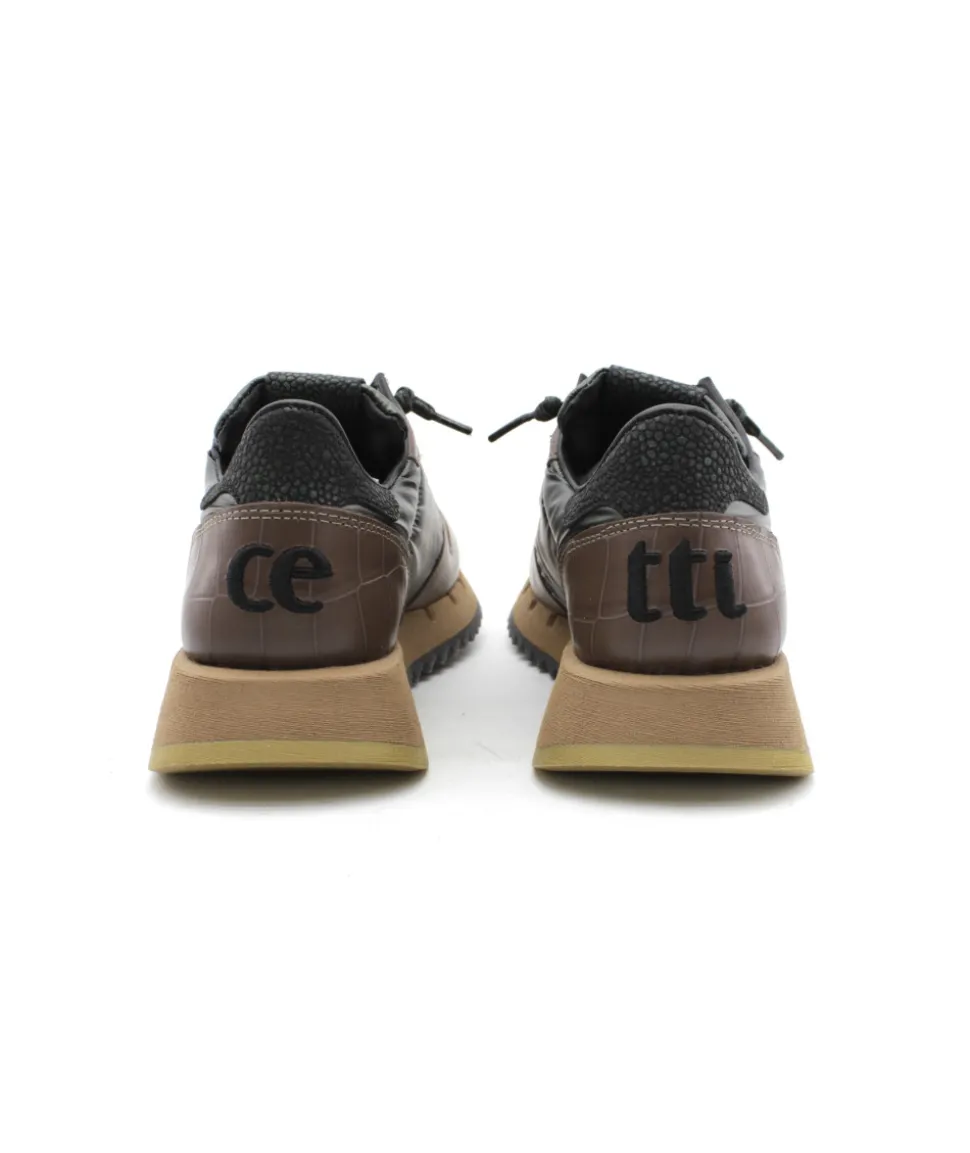 Nouvelle forme cette saison avec l’arrivé du modèle C1301 SWEET NATIVO signé par la maison espagnole CETTI. Disponible en cuir kaki, cette sneakers tendance nous surprend par son joli mélange de matière et de couleur…. Avec son imprimé serpent, croco et , ses paillette et ses lacets léopard, cette basket habillera chacune de vos tenues.