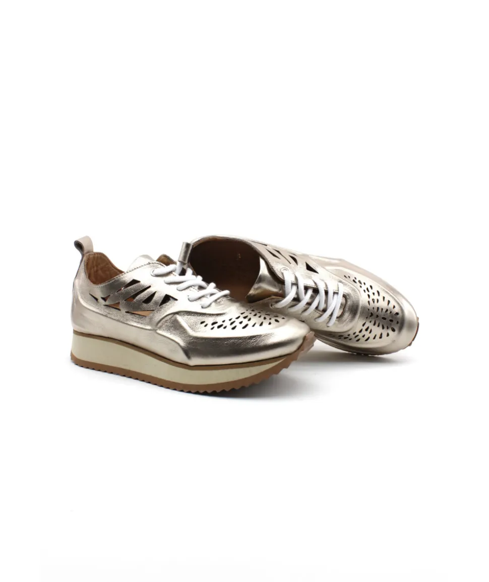 Nouveauté cette saison avec cette baskets ultra branché ! Coco & Abricot nous dévoile une nouvelle forme avec un style décalé et très looké ! Vous cherchez une sneaker mode et tendance, n’attendez plus, avec ESBLY V2807E en cuir métallisé champagne c’est le succès garanti ! Son cuir rembourré et perforé pour un style hors du commun, et une semelle épaisse très confortable pour vous accompagner tous les jours.