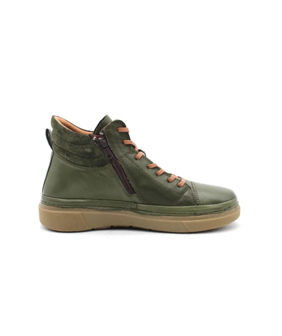Coco & Abricot nous présente une nouvelle forme dans leur collection avec ce modèle de basket montante en cuir kaki. MEYRIE V2314C est une chaussure souple montée sur une semelle en gomme flexible et habillée de lacets orange, un joli mélange de couleur pour une chaussure au look tendance. Pratique, confortable et légère, elle sera rapidement votre préféré. Laissez-vous tenter…