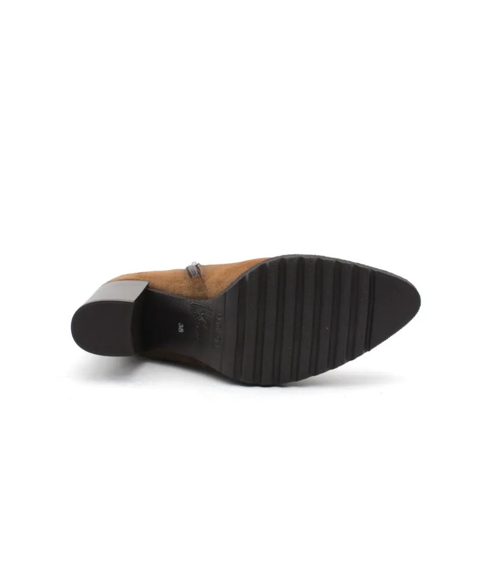 Plus besoin de vous venter les atouts de la forme THAIS de la maison espagnole Dorking qui revient cette saison avec le modèle D8897 en cuir velours noir et cognac. Cette fois-ci, elle se monte sur une tige courte et s’équipe d’élastiques cachés par des empiècements en cuir d’un côté et d’un zip de l’autre. Pratique et élégante, cette forme est à avoir absolument dans sa garde robe. Son talon de 7 cm vous offrira quant-à lui, la cambrure parfaite.