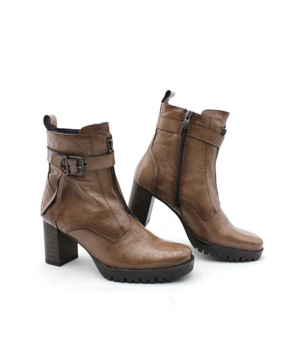 Comme à son habitude Dorking ne manque pas d’idées pour créer de nouvelles formes… Cette année, la marque espagnole nous fait découvrir la bottine D9163 EVIE en cuir vernis taupe. Un cuir de qualité monté sur un talon de 7 cm pour vous faire prendre de la hauteur, une boucle décorative et un zip sur le coup de pied et à l’intérieur pour plus de praticité lors de l’enfilage, voici la recette d’une boots réussie. Confortable et féminine, il ne manque plus qu’elle dans votre dressing…