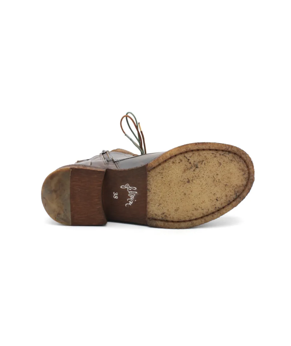 Le modèle D175 de la maison Felmini fait son apparition cette saison avec son cuir couleur marron cognac. Un look rangers vintage, accompagné d’un double lacet vert et orange original, le tout assit sur un petit talon qui permet d’obtenir un produit mode et confort. Réglable avec son lacet, souple avec sa semelle en gomme flexible, c’est la bottine à tout faire par excellence ! Le petit plus ? Le zip intérieur rajouté pour la praticité.