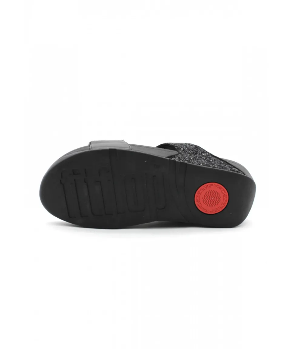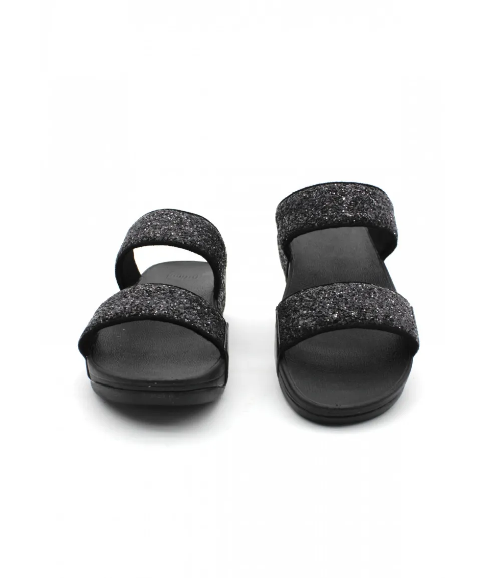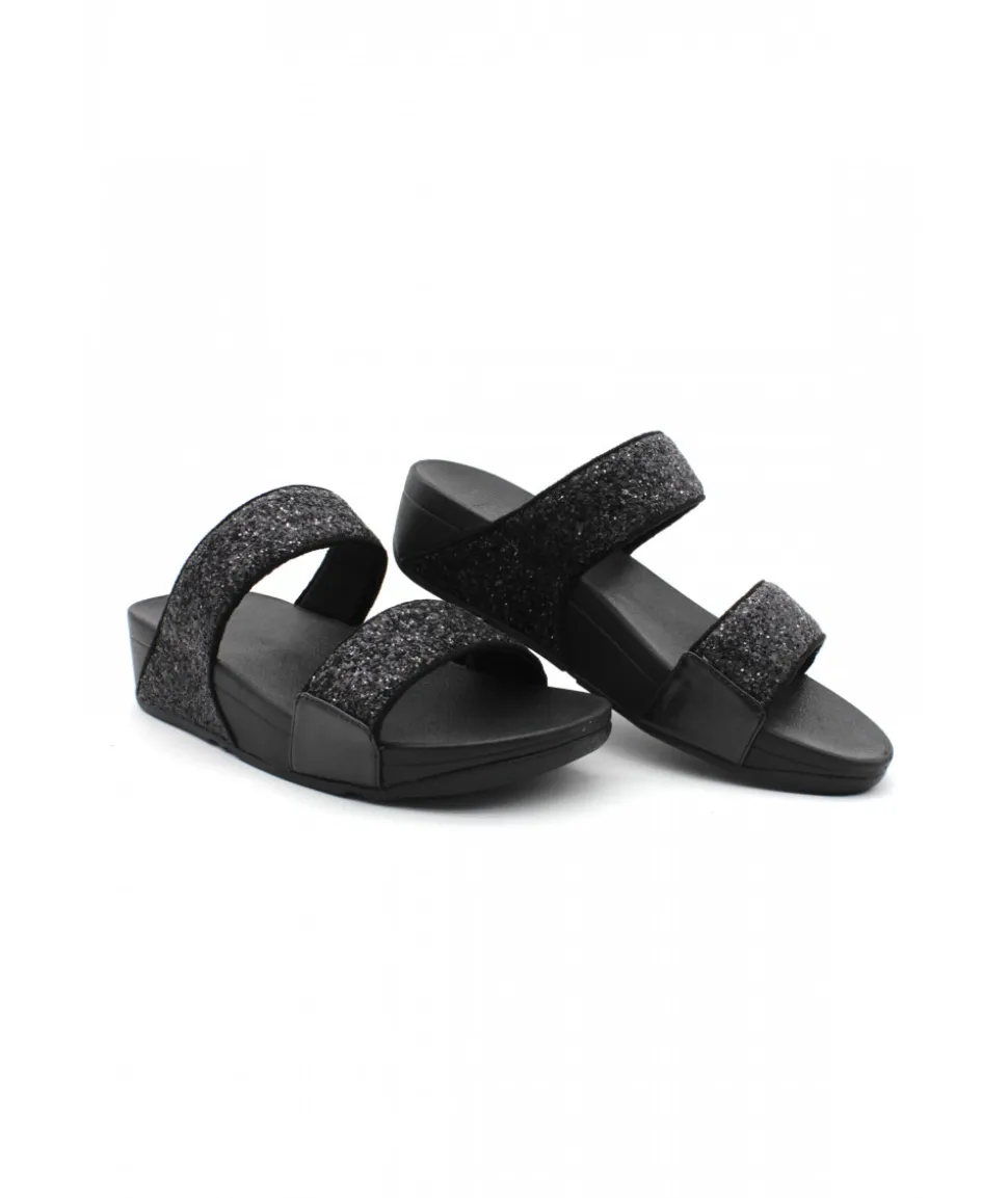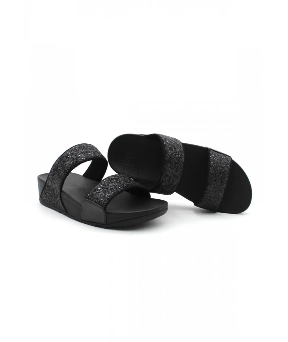 Forme incontournable chez FITFLOP, le modèle LULU GLITTER SLIDES et ses deux brides noires (ou platine) réglables ornées de paillettes pour un rendu chic et élégant sur une semelle ultra-légère.
