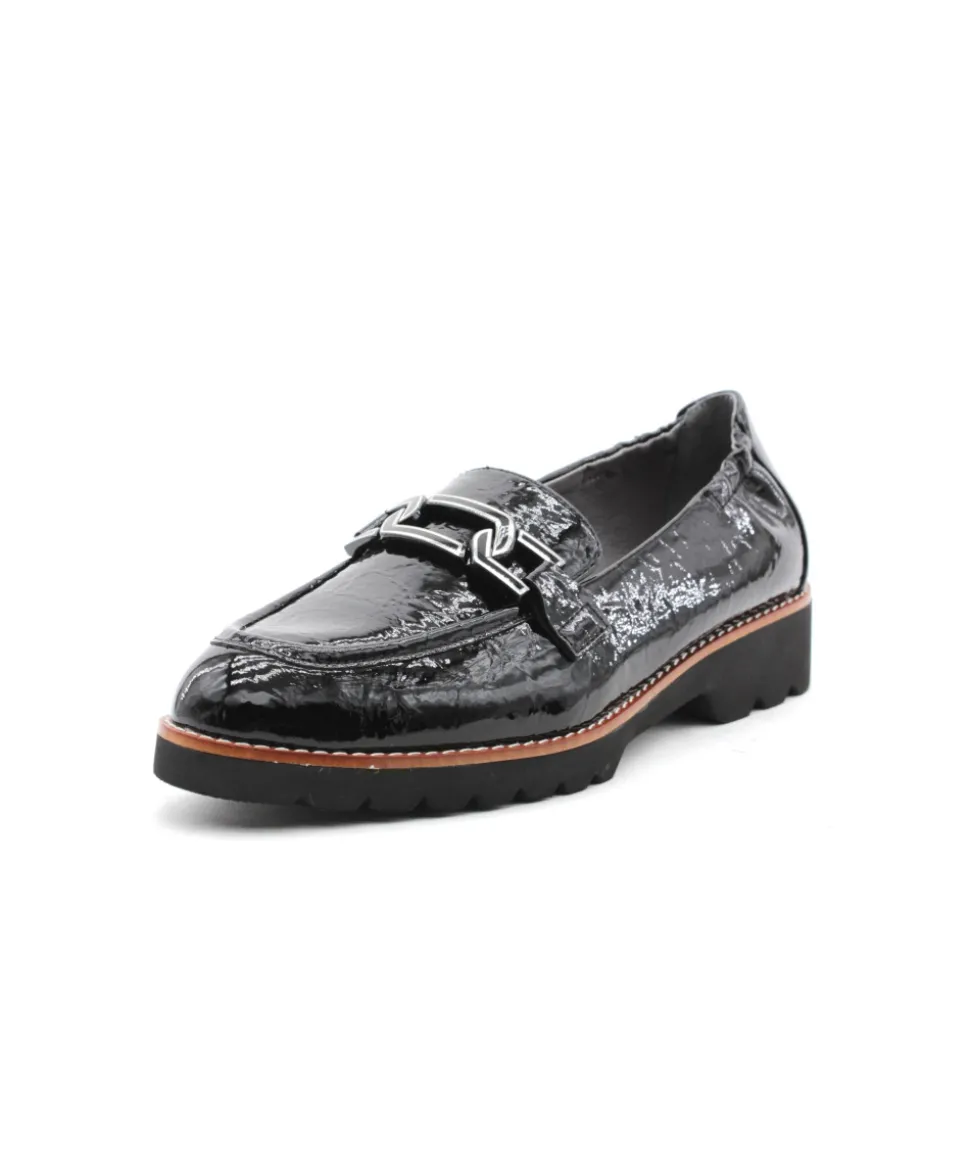 Nouvelle création de la maison française Fugitive avec ce mocassin en cuir vernis noir CYCLOUN. Un look moderne et féminin grâce à sa semelle en gomme légère, son cuir vernis et sa barrette. Énorme tendance, le mocassin se fait une place de choix dans le shoesing des femmes ces dernières années. Chic et raffiné, comme vous, ces chaussures s’associeront facilement à vos robes, jupes, pantalons à pinces…