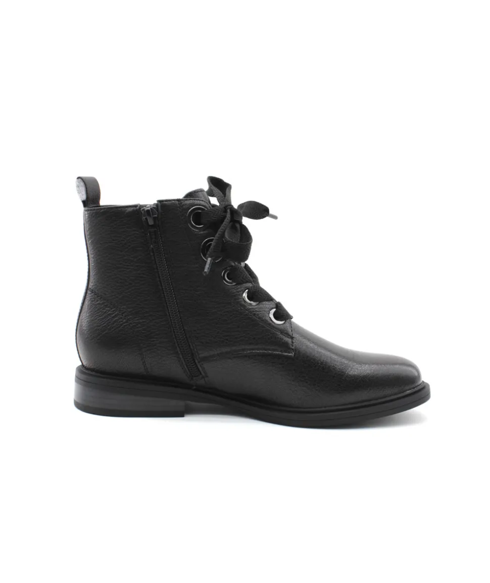 À la recherche d’une bottine confortable qui vous fera prendre un peu de hauteur ? La création FEUTRE revient cette saison dans un superbe cuir vernis noir avec ses détails argentés. Chic et tendance avec ses oeillets imposant et son lacet plat, cette boots vous comblera de bonheur par sa cambrure parfait et son petit talon de 3 cm. Son originalité et son look atypique ne vous fera pas passer inaperçu.