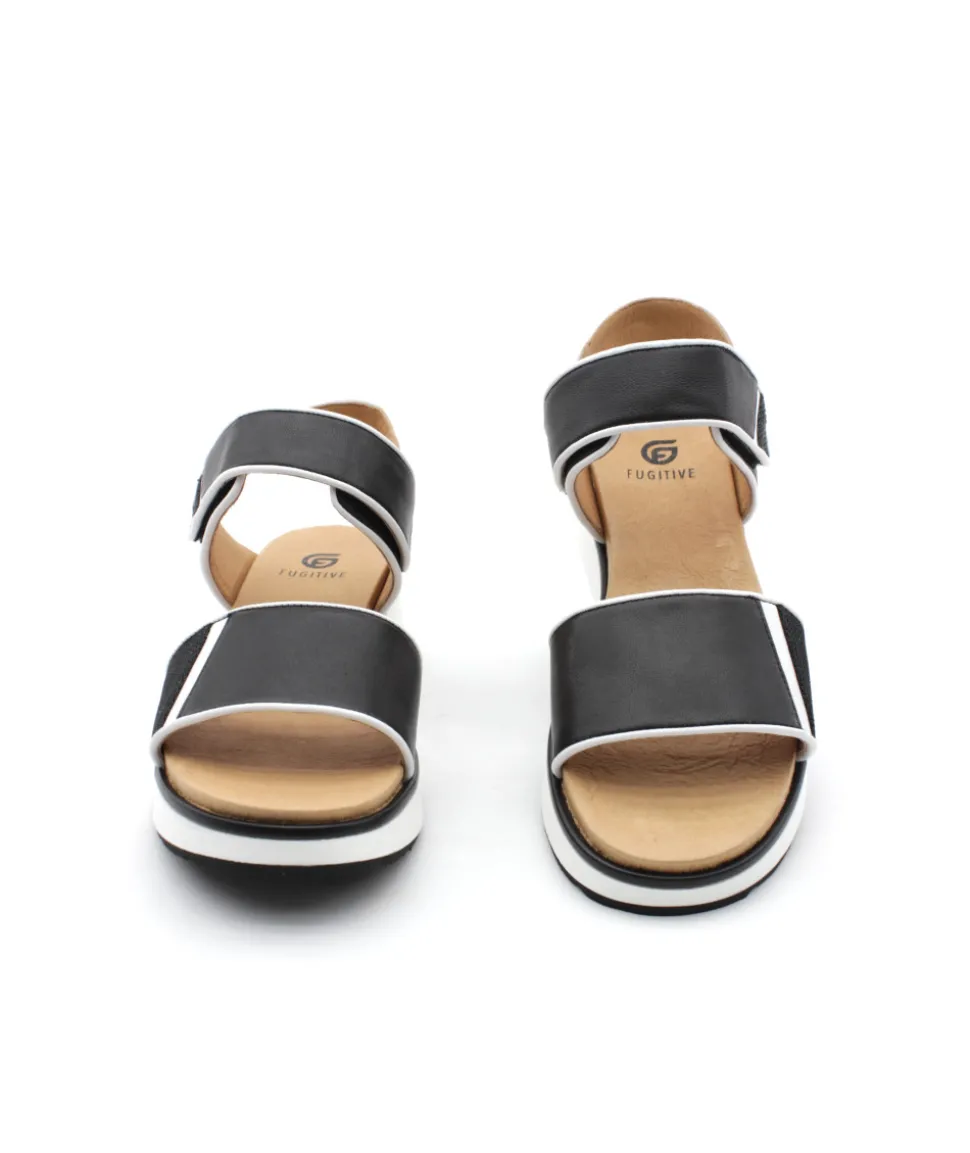 Chaque femme mérite sa paire de FUGITIVE… Et cette saison, la nouvelle tendance ce porte sur le modèle KIMONO en cuir noir et blanc. Avec son talon compensé idéale de 5 cm et sa semelle en gomme confortable, c’est le nu-pieds parfait pour vous suivre toute la journée. Comme à son habitude, la maison Fugitive porte un oeil aiguisé sur la qualité de finition avec de jolies brides aux détails dorés et blanc ainsi qu’un réglage velcro discret sur la bride cheville pour un rendu chic et féminin.