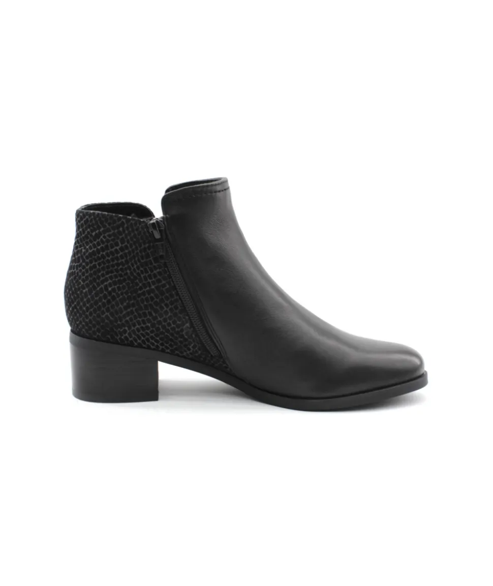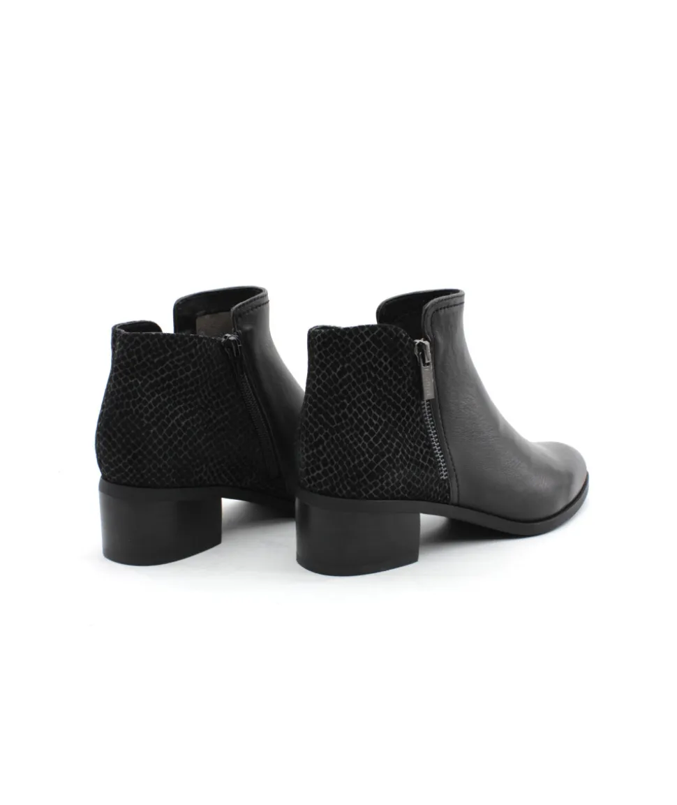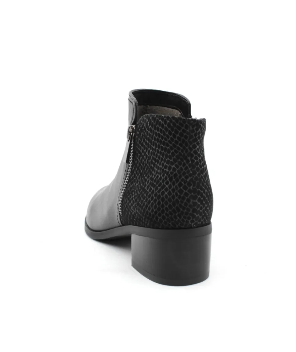 Fugitive fait son retour cette saison avec le modèle Racine. Indémodable, cette boots est le compromis parfait pour tout les jours avec son cuir noir. Légère, souple et confortable, plus besoin de venter ce modèle qui a déjà fait ses preuves ! L’arrière de la bottine a changé de look avec un empiècement en cuir imitation serpent pour plus d’originalité. Son talon de 4 cm offre la cambrure parfaite tandis que son zip intérieur vous facilitera l’enfilage.
