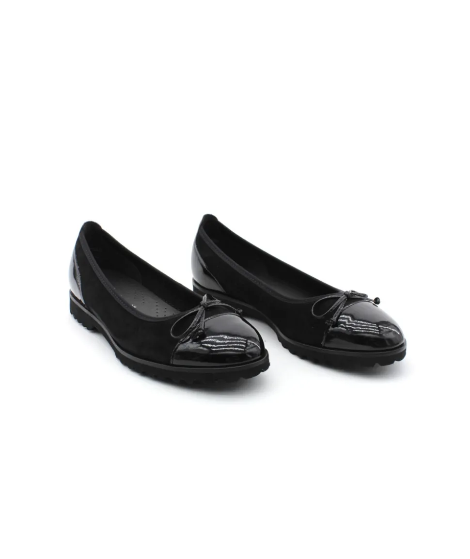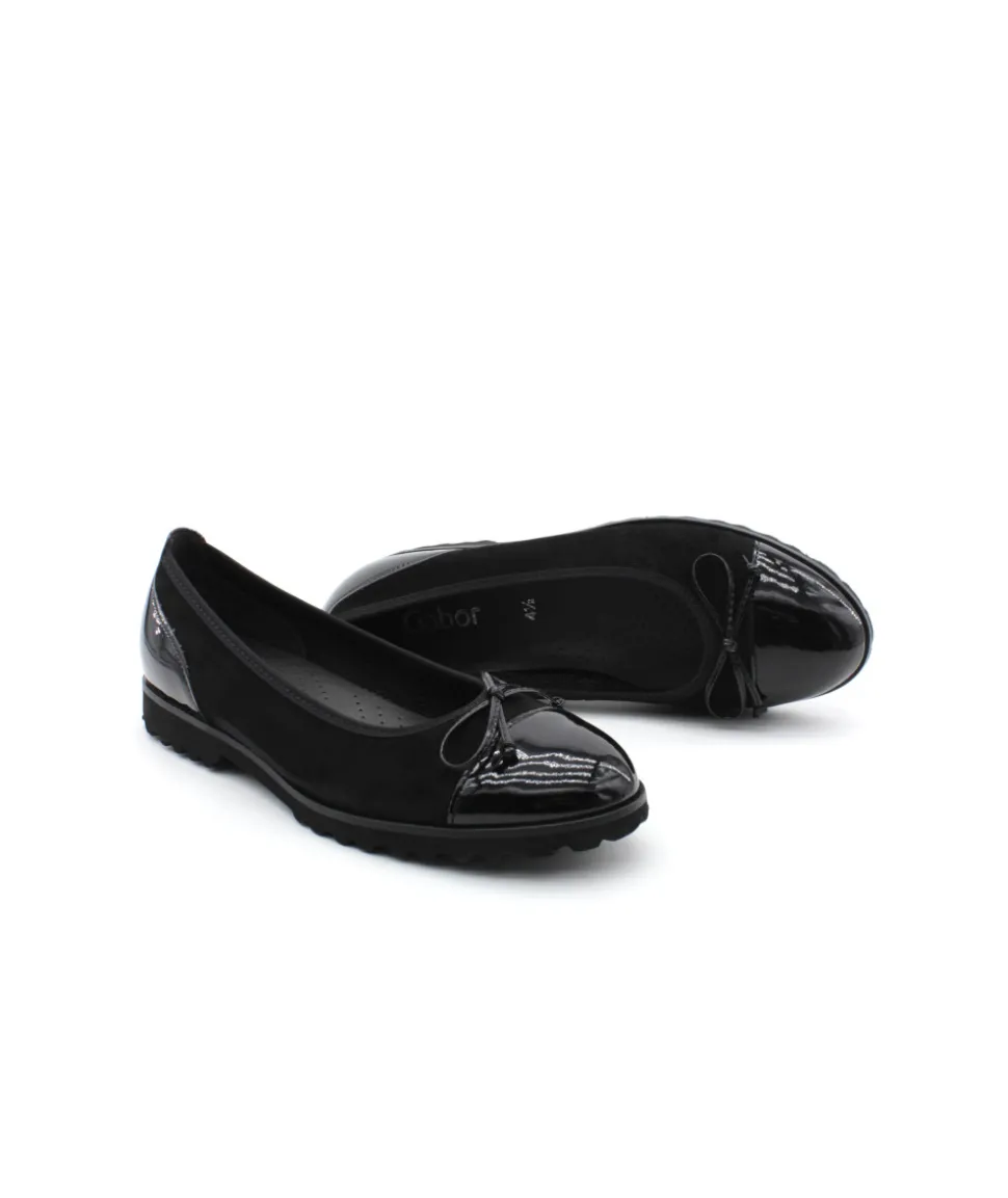 La ballerine moderne version GABOR : réalisée en largeur F et dotée d’une doublure matelassée textile, cette ballerine d’un genre nouveau vous plaira par sa semelle profilée cranté mais légère et souple, par son col élastiqué s’adaptant à de nombreuses morphologies et par son poids plume gage de confort tout au long de la journée… à ne pas louper !