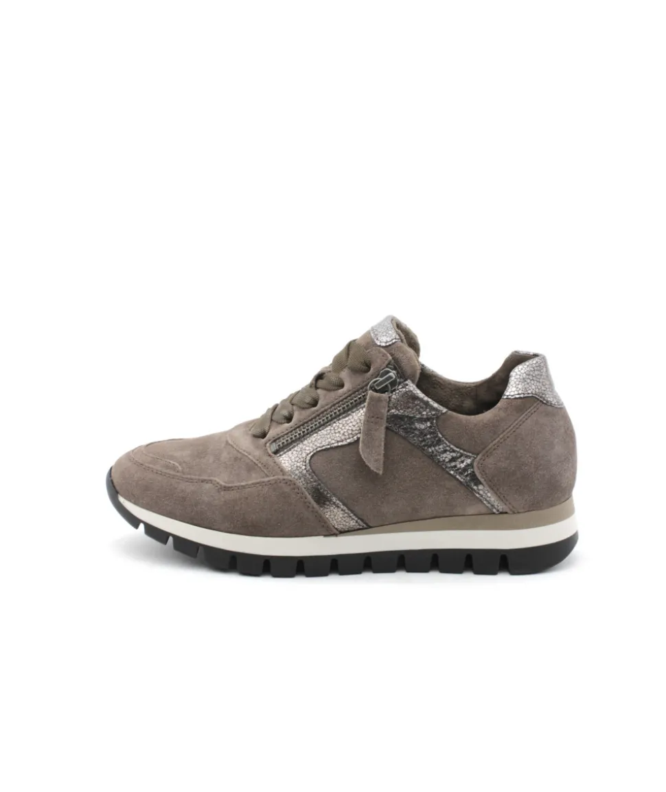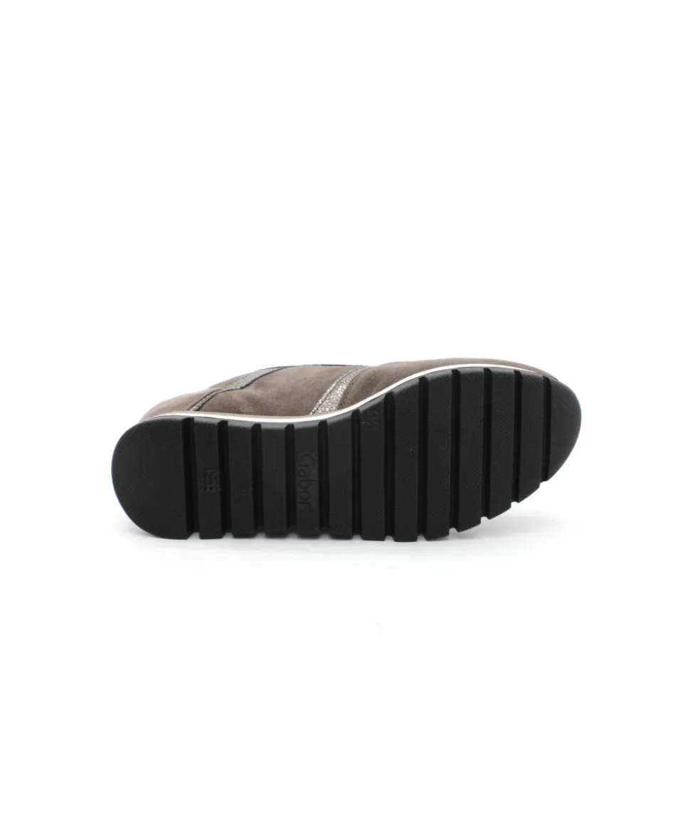 À chaque femme sa paire de basket. Cette fois, nous vous présentons la nouvelle GABOR 36.438.30 en cuir velours taupe accompagnée d’empiècements en cuir lisse et croco métallisé. Chic et élégante, cette paire de sneaker confortable se montre à l’aise dans toutes les situations grâce à sa semelle rainurée qui offre beaucoup de souplesse. Son lacet viendra s’ajuster à votre pied tandis que ses zips de fermetures vous faciliteront l’enfilage. Plus de doute, c’est la paire qu’il vous faut !