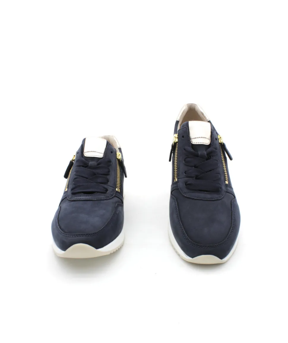La maison allemande GABOR nous dévoile sa dernière création, le modèle 43.420.11 dans son coloris bleu marine vous fera craquer par sa légèreté et son confort de marche. Avec une semelle amovible, un zip de fermeture de chaque côté et un lacet, ces sneakers sport chic deviennent le modèle pratique et tendance qu’il vous faut !