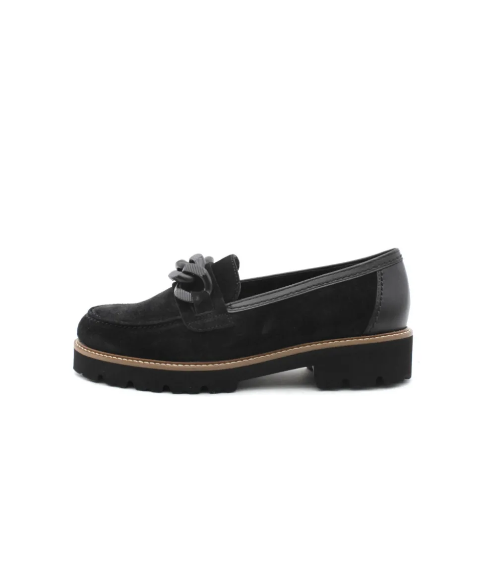 À la recherche d’un mocassin atypique, une couleur indémodable qui pourra facilement s’associer à vos tenues ? Ne cherchez plus… Voici le modèle 55.240.17 en cuir velours noir de la maison allemande GABOR. Un mocassin en cuir confortable, assis sur une semelle en gomme de 3 cm pour un amorti optimal. Féminine avec son bijou tendance, cette chaussure vous fera craquer tous les matins…