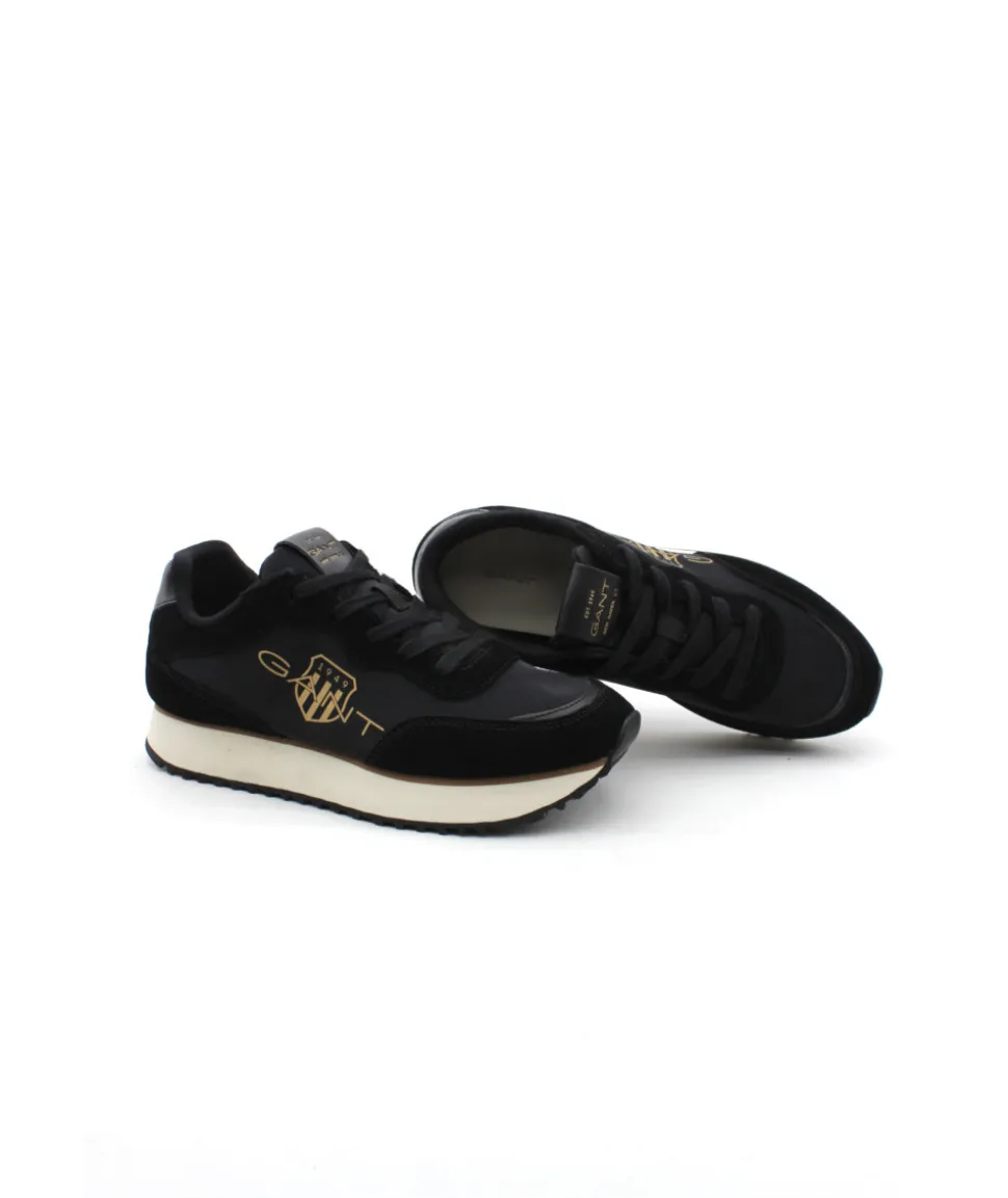 Jolie basket Sportwear noir signée GANT. Avec son look Sport / Urbain, la basket BEVINDA G00 vous assures un succès certain. Une toile et un cuir velours couleur noir sur une semelle beige crantées et le logo de la marque posé délicatement sur le côté couleur or, c’est la combinaison parfaite de la basket qu’il vous manquait ! N’attendez plus et optez pour cette sneaker ultra-légère et confortable grâce à sa semelle en caoutchouc.