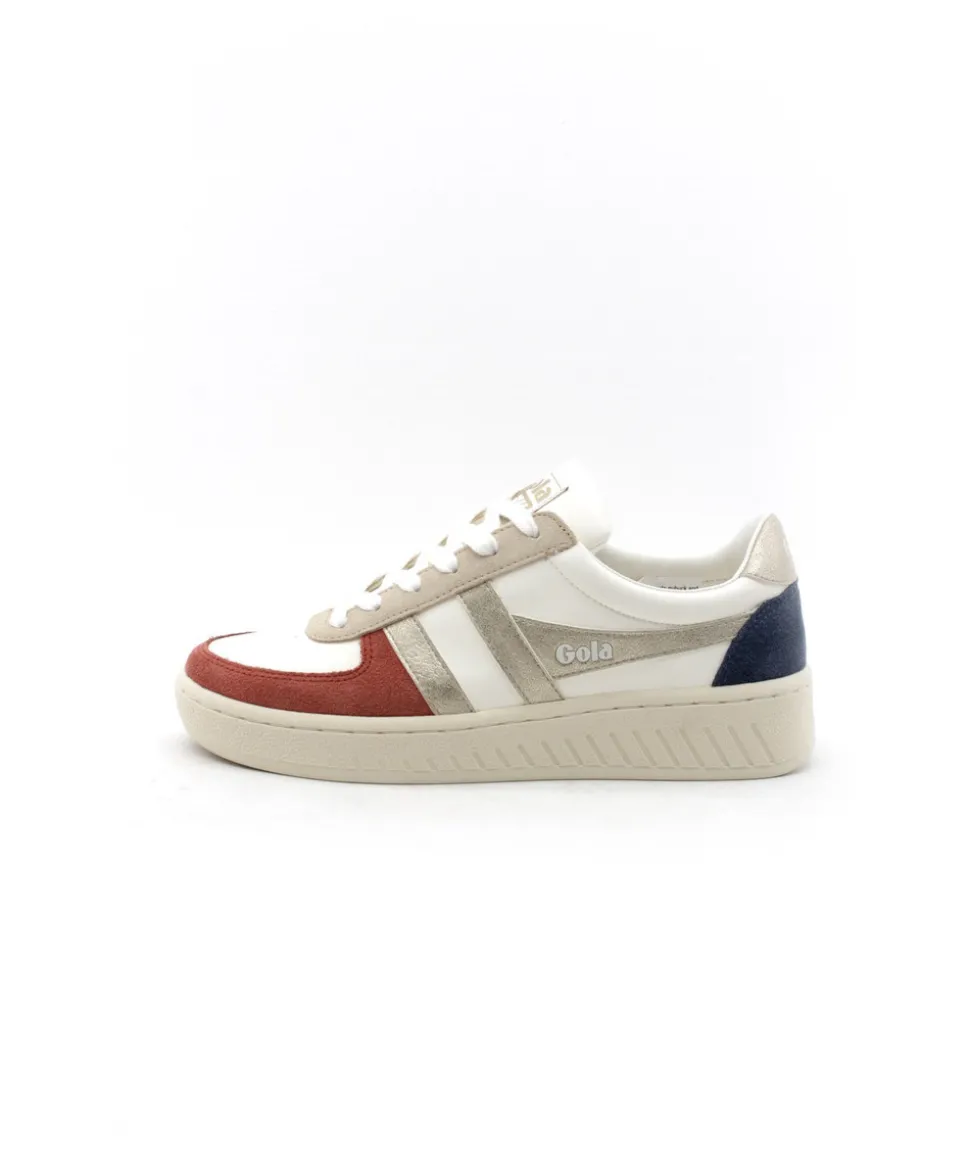 Une basket décontractée aux allures sport chic ? Voici la création GRANDSLAM QUADRANT CLB207 de la marque GOLA dans mix de cuir blanc, bleu, rouge, rose et doré. Simple et raffinée, le style de cette sneaker est apprécié pour sa facilité d’association, à porter avec une tenue décontractée ou un total look casual chic. Son lacet ajustera la chaussure à votre pied et sa semelle en gomme souple amortira les chocs pour un confort optimal.