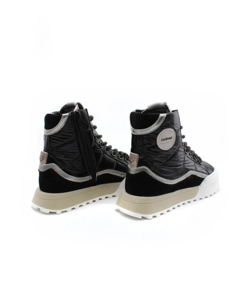 La marque Iconiq fait son apparition dans notre collection. Cette saison, la marque réinvente la basket montante avec un look ultra-tendance en cuir blanc et noir. Dessiné en France et fabriqué à la main au Portugal, ces sneakers mélanges les matières et les couleurs pour un rendu à couper le souffle. Ses lacets et son zip vous permettrons d’ajuster la chaussure à votre pied tandis que sa semelle compensée vous offrirons tout le confort souhaité. Son style inimitable vous rendra tout simplement… IQONIC.