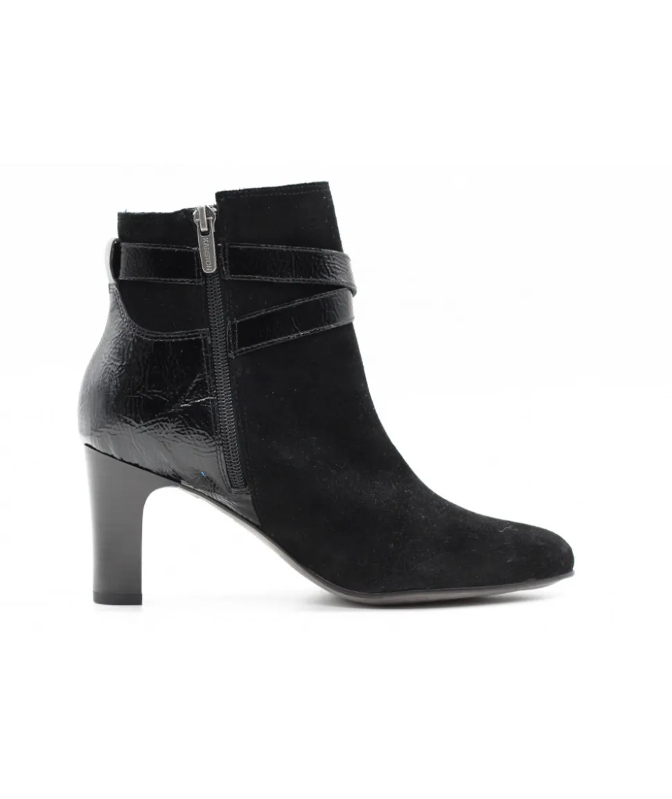 Dessus : Cuir Velours NOIR et Vernis NOIRDoublure : CuirSemelle extérieure : ElastomèreTalon : 7.5 cmFABRICATION FRA…