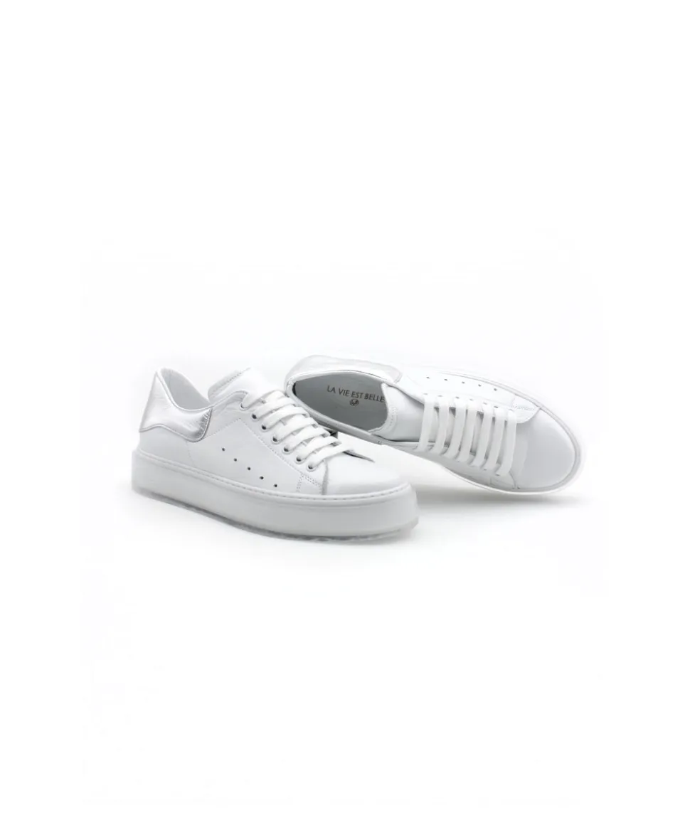 Nouvelle basket à découvrir rapidement, voici CAROLE-001 en cuir blanc. Une création sport chic de la maison française Adige qu’il manquait dans votre shoesing. Avec sa semelle en gomme souple tendance, son contrefort argenté et des détails soignés, cette sneaker se mariera aisément avec vos tenues chics ou de tous les jours.
