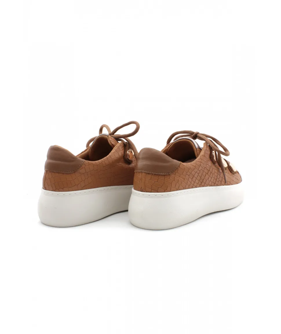 Avec cette basket ultra-originale, Mamzelle revient en force cette saison. Pleine de charme, la CAMIL mix les motifs sur son cuir camel et noir et s’assoit sur une semelle compensée blanche. Avec un joli laçage et des passant dorés, la féminité et l’élégance s’empare de cette sneakers pour femme. On apprécie la légèreté de sa semelle et le confort offert.