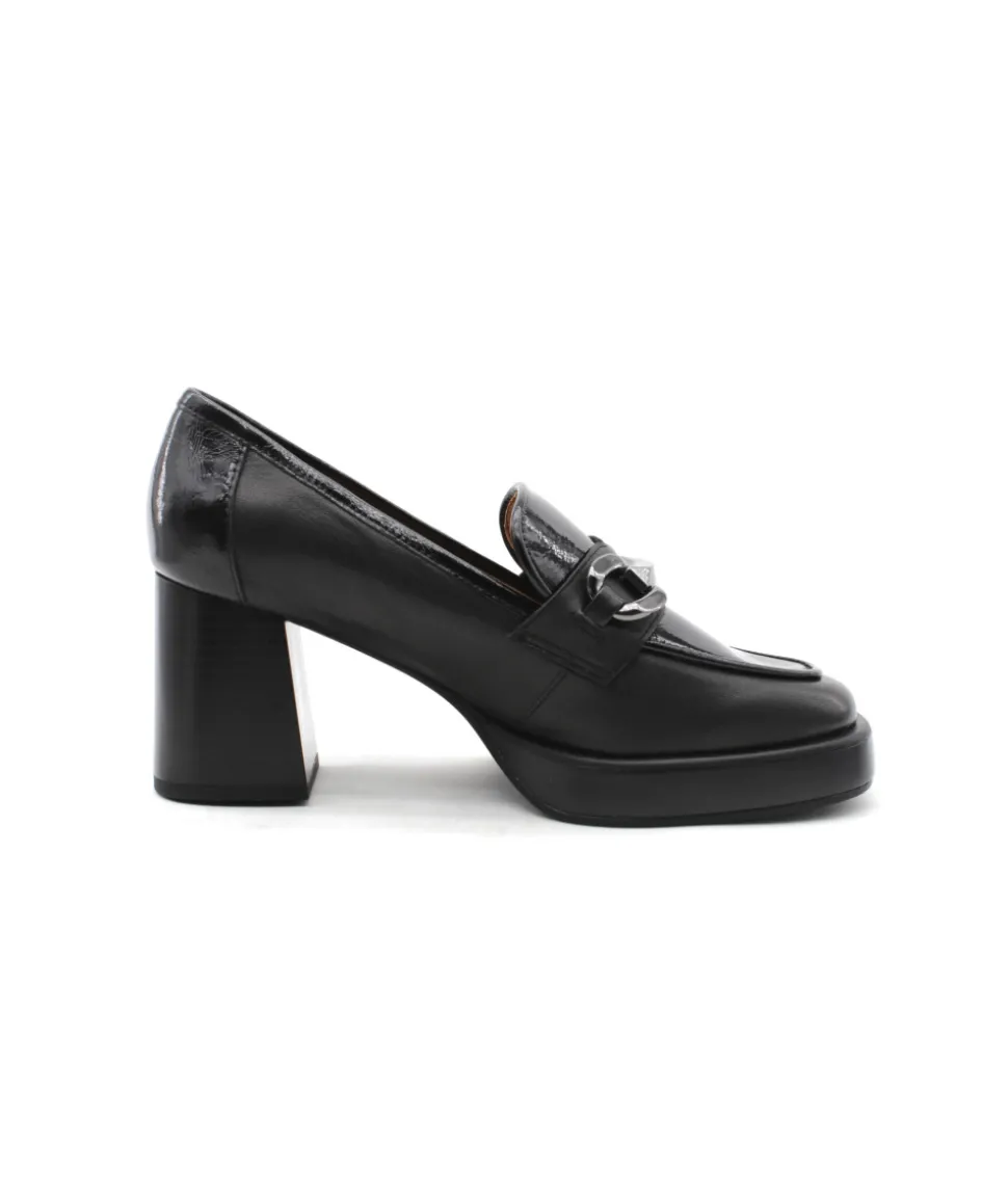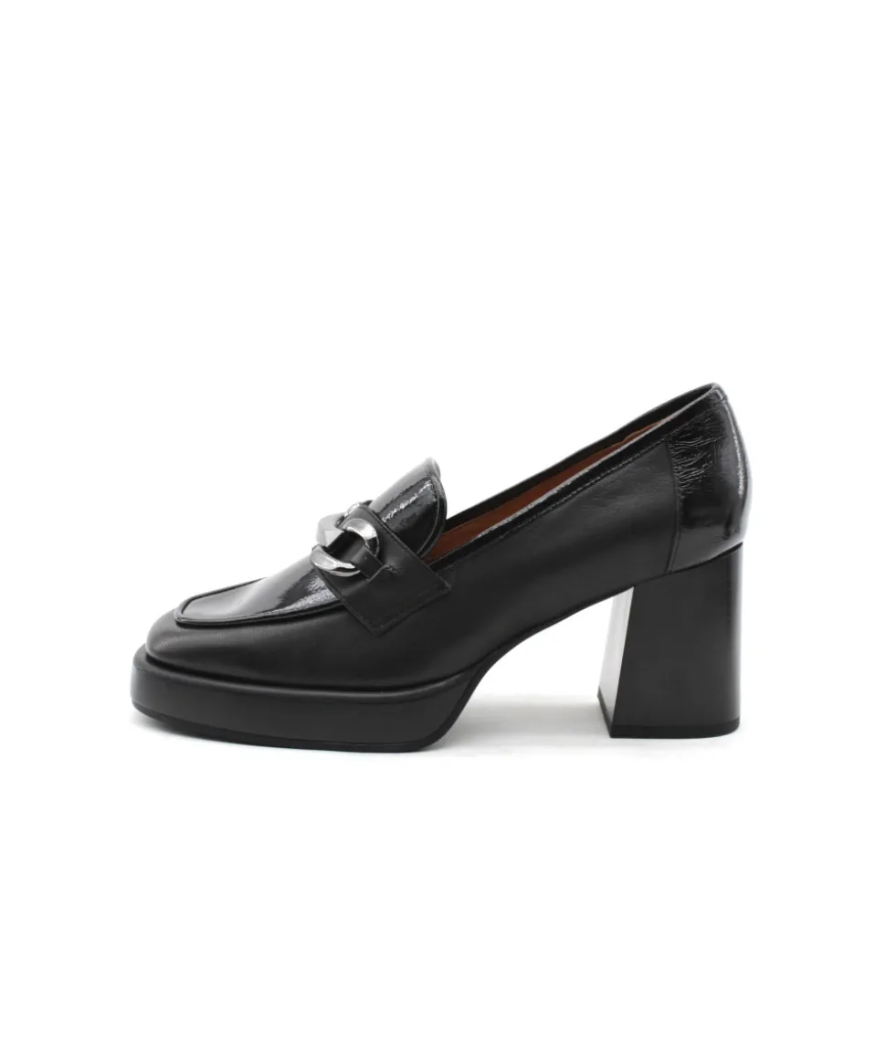 Énorme tendance cette saison, MAMZELLE propose un mocassin bimatière à talon très féminin en cuir noir et vernis noir, décoré d’un mord argenté sur le dessus du plateau pour un rendu encore plus chic. Souple, confortable et élégant, le mocassin LIMON est un véritable must-have de la collection actuelle ! Son talon de 7,5 cm vous offrira une cambrure idéale pour vous accompagner toute la journée avec féminité. N’attendez plus, ils sont fait pour vous !