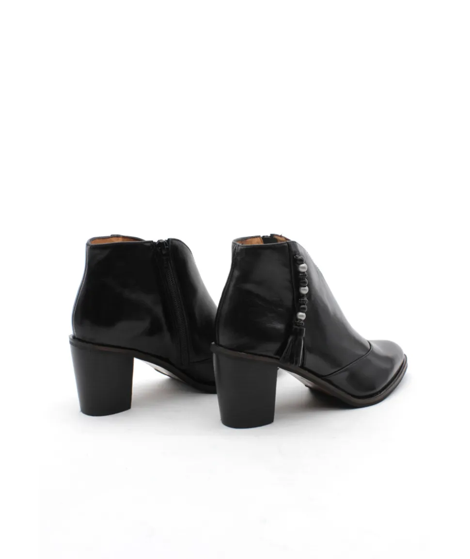 À la recherche d’une jolie bottine pour l’hiver ? Voici la nouvelle indispensable de chez Mamzelle NATAX en cuir noir. Une frange habillée de perles s’empare de la tige pour offrir un look moderne tandis que sa coupe « décolté » vous apporte un réel confort lors de la marche. Son zip quant-à lui vous facilitera l’enfilage. Légère, souple et pratique, cette boots se classe directement dans nos coups de coeur à porter à chaque occasion.