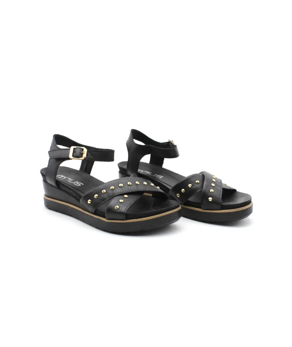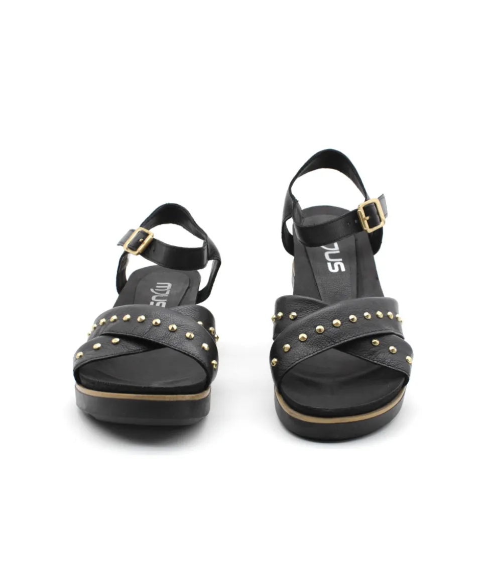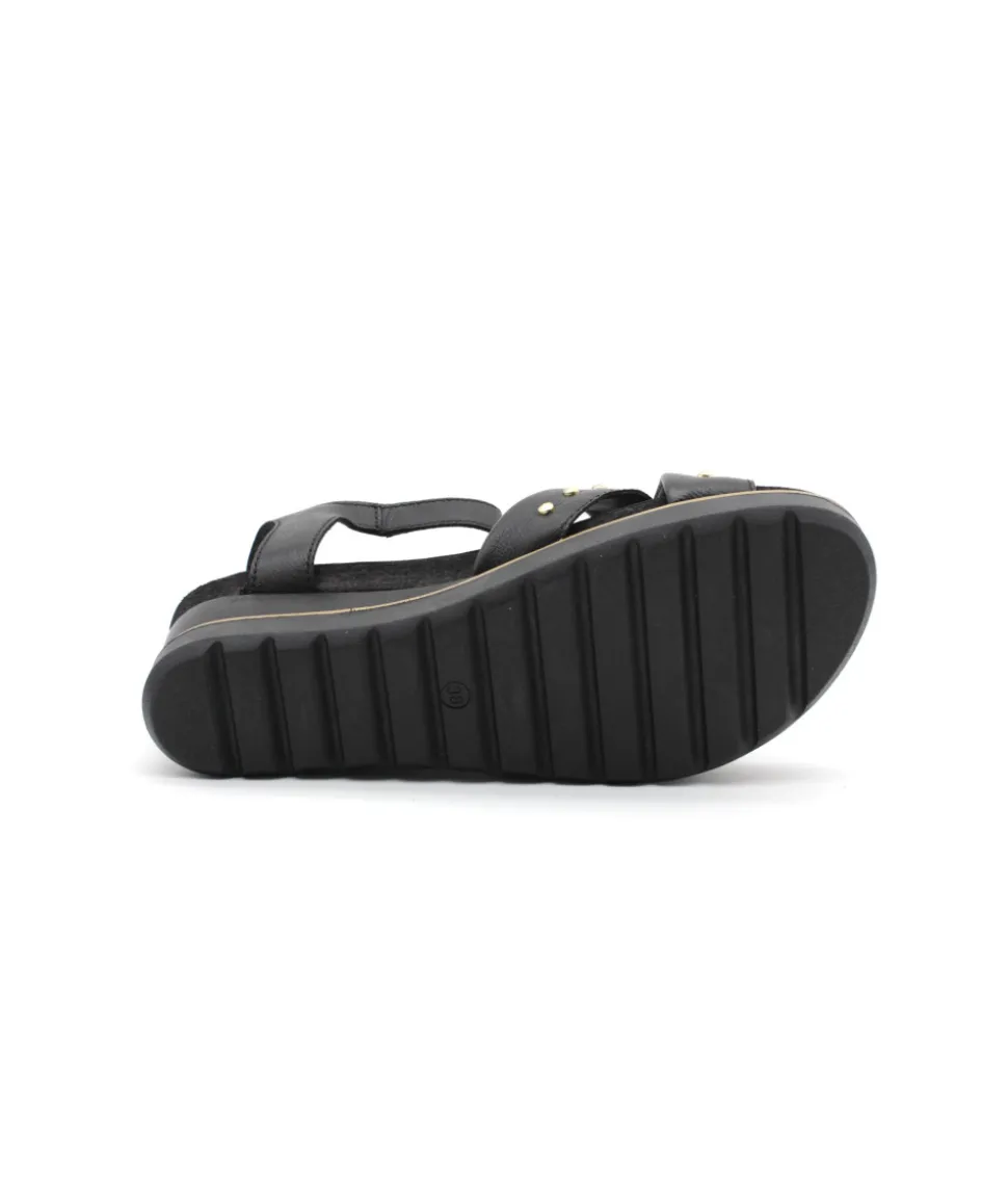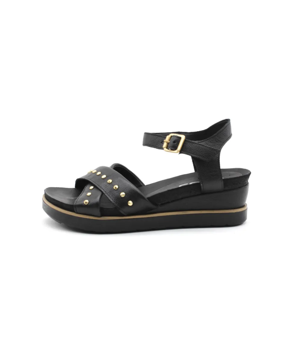 Des empiècements en cuir cannelle ou noir de qualité, une bride cheville pour un bon maintien, une semelle compensée pour le confort et des clous dorés pour un look unique. C’est tout cela réuni qui rend ces sandales pour femme aussi belle que tendance.