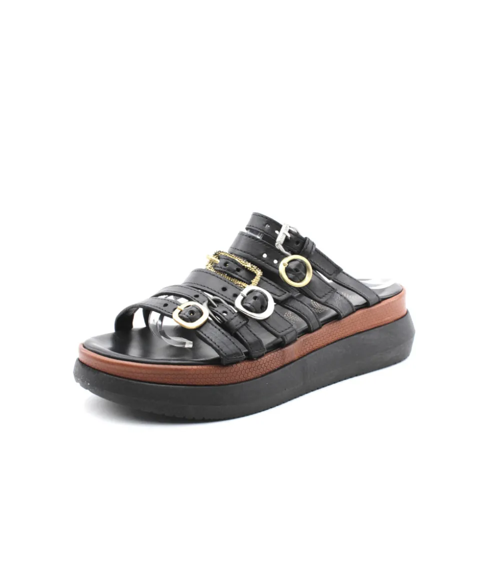Mjus vous présente sa nouvelle mule à talon compensé version noir. Le modèle M38043 se monte sur un talon de 5 cm et des brides d’un cuir haut de gamme, très confortable pour votre pied. On aime son look spartiate accentué par ses nombreuses brides. Un modèle unique qui n’attends plus que vous.