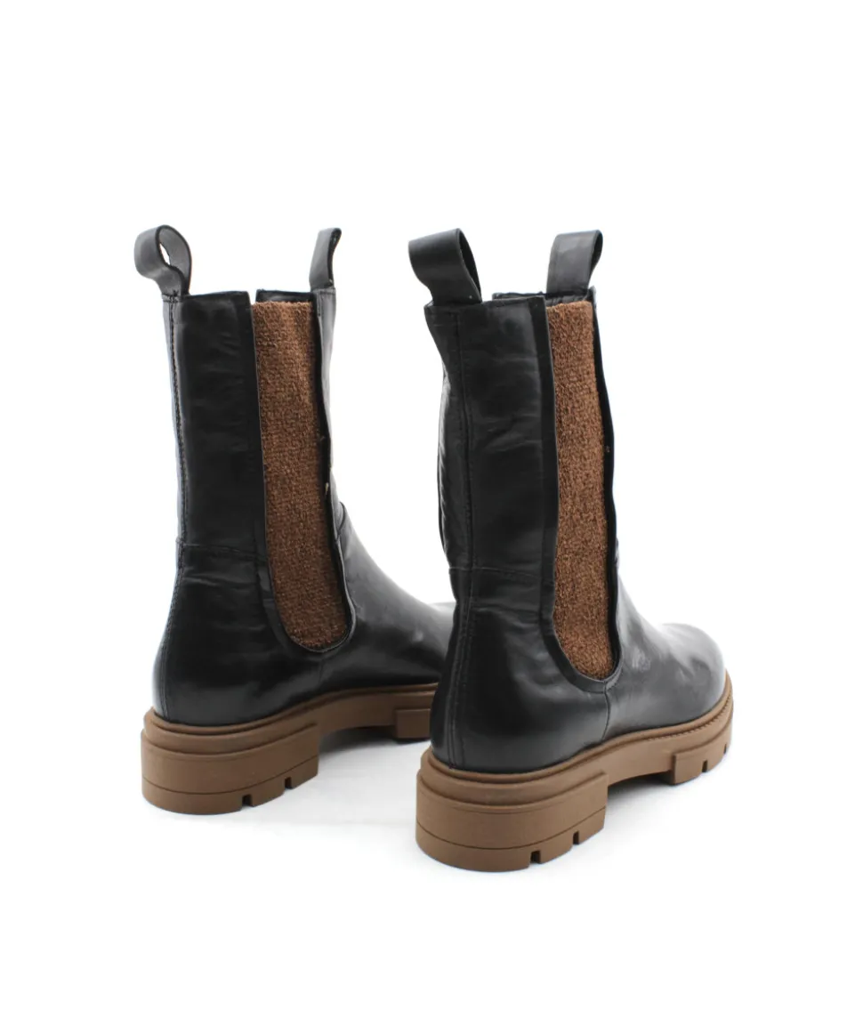 Immanquable de la collection, Mjus revient cette saison avec cette jolie boots pour femme en cuir noir. Le modèle P79225 s’équipe d’une semelle épaisse en gomme pour un confort accru et d’une tige élastiquée pour plus de praticité lors de l’enfilage ! Rien de mieux pour affronter l’hiver et garder les pieds au chaud grâce à sa doublure en textile recyclé. On aime son look bicolore avec sa semelle marron en rappel à ses élastiques, c’est un sans faute !