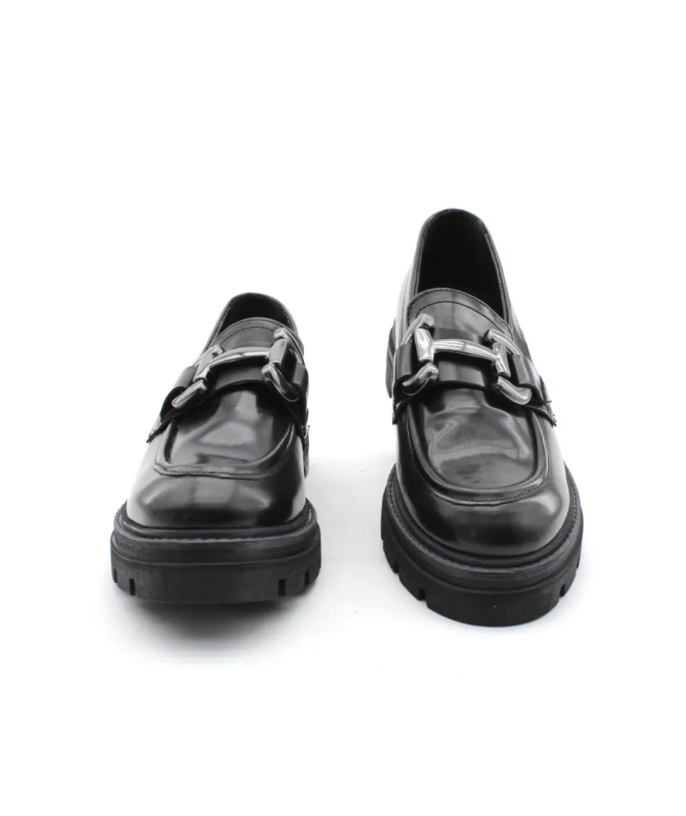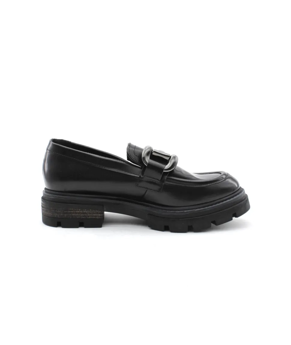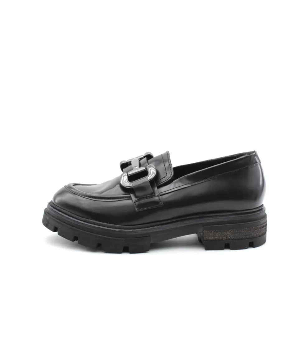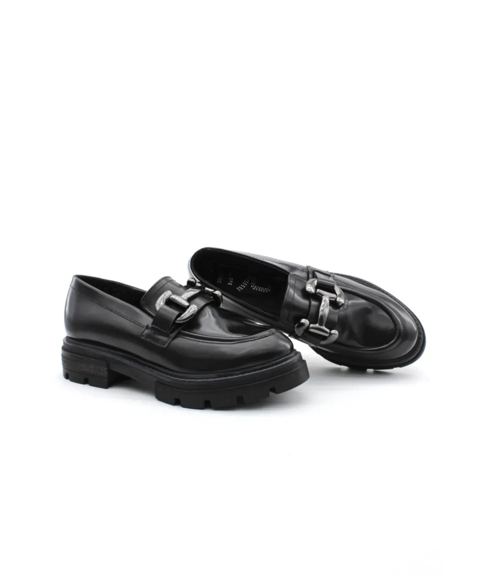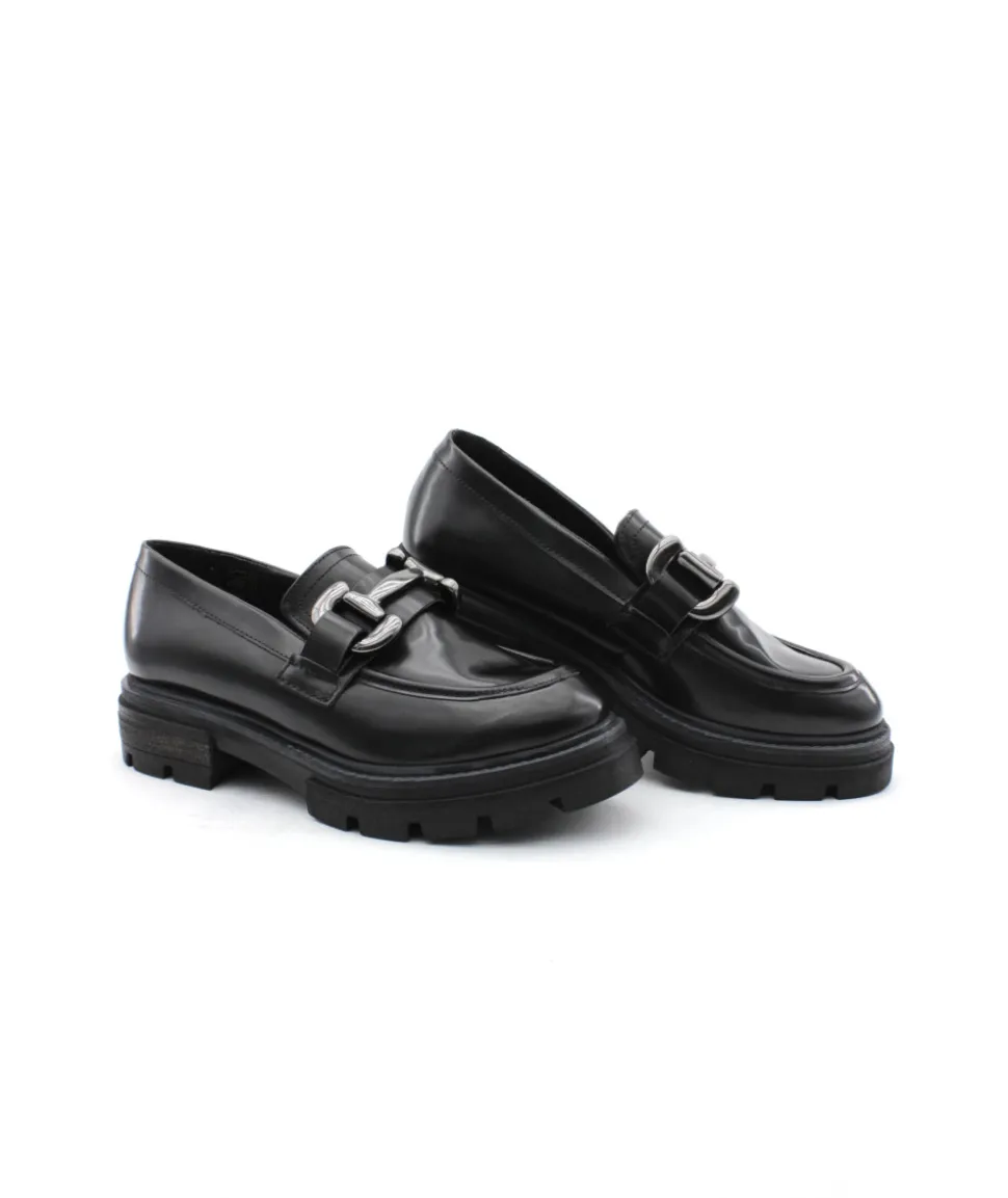 Bonne nouvelle ! Mjus nous dévoile sa nouvelle création, un mocassin plein de charme avec une semelle imposante et un plateau jointé bourrelet au style rétro. Le modèle P31103 en cuir noir ne manque pas de caractère pour attaquer les journées hivernales et vous promet un confort à toutes épreuves grâce à sa semelle légère. Sa barrette argentée lui offre un look chic qui s’accordera avec vos tenues formelles et de tout les jours.