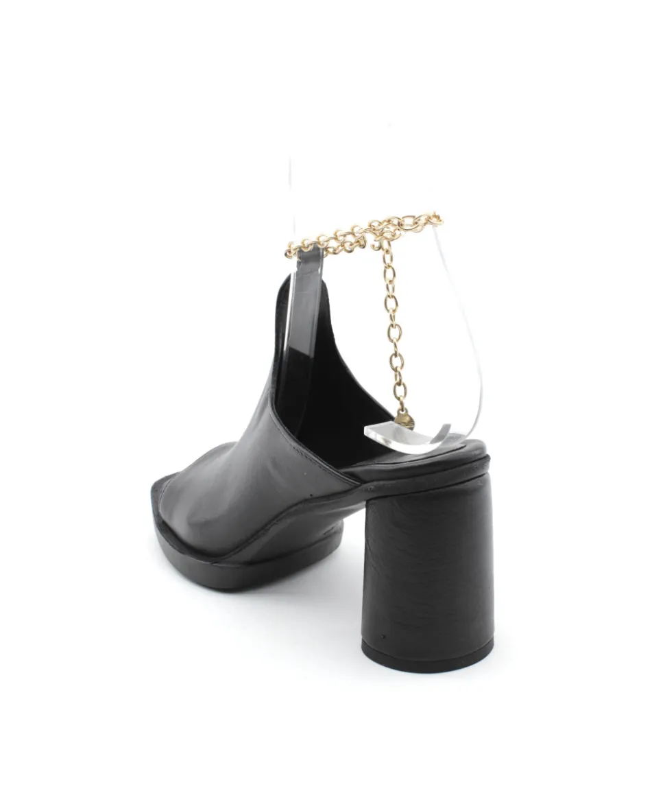 Mjus vous présente sa nouvelle sandale à talon version noir ou marron. Le modèle T26004 se monte sur un talon de 8 cm et un cuir haut de gamme, très confortable pour votre pied. On aime son élégance et sa féminité accentué par sa chaine dorée en tour de cheville. Un modèle unique qui n’attends plus que vous.