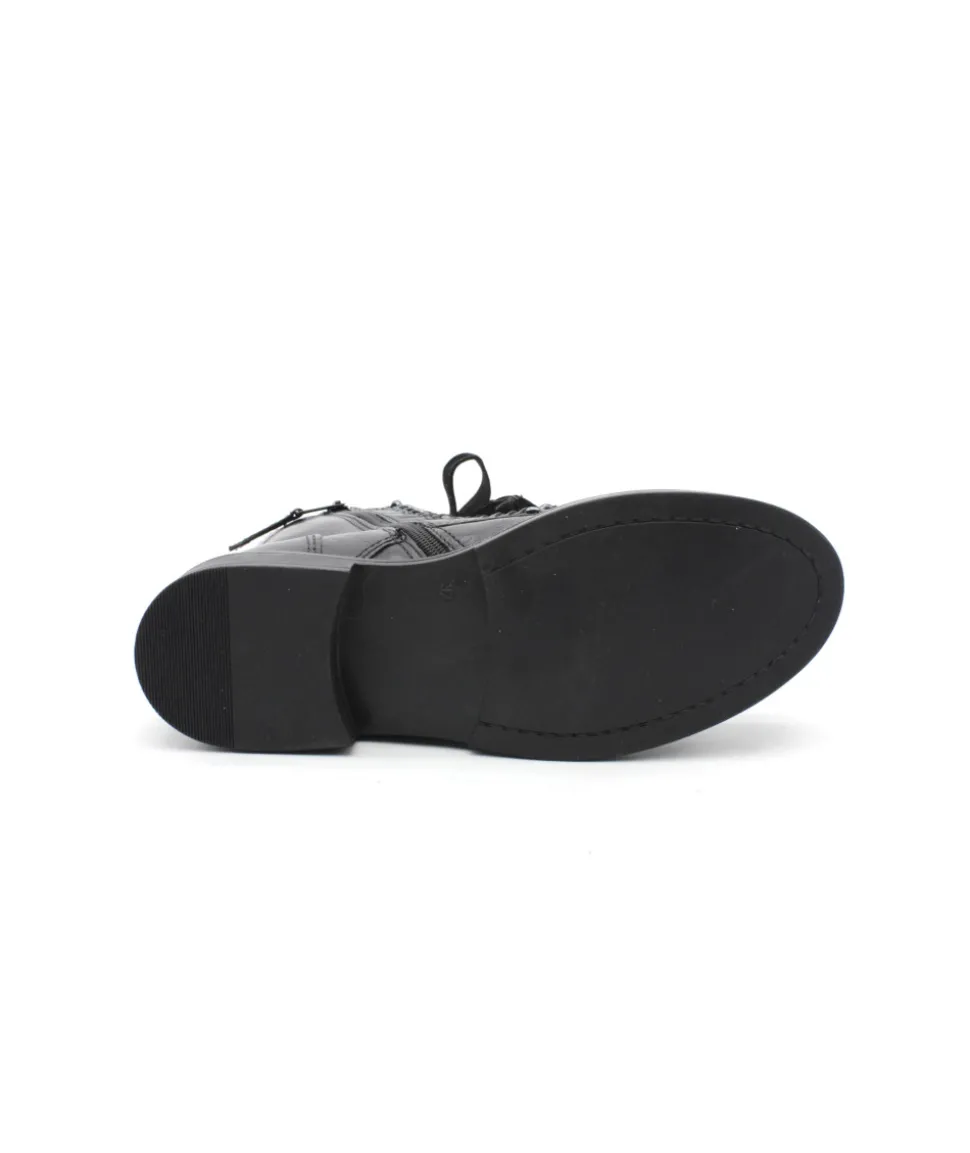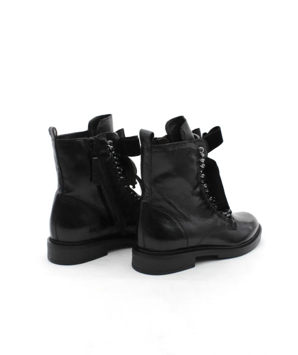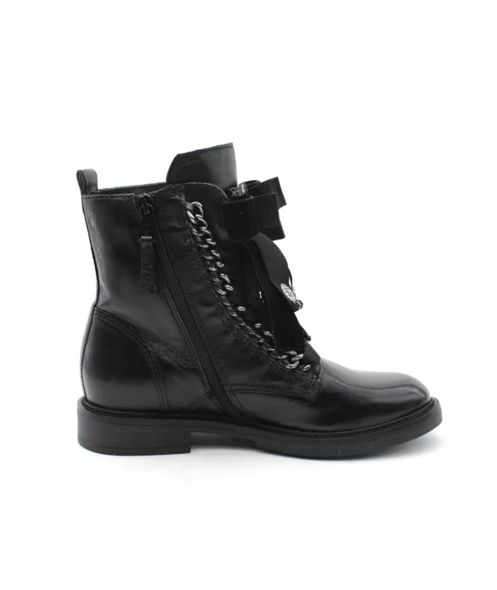 Immanquable de la collection, Mjus revient cette saison avec cette jolie bottine pour femme en cuir noir. Le modèle T81204 s’équipe d’une semelle en gomme pour un confort accru, d’un lacet plat ultra original avec des passants argentés, d’un noeud papillon féminin ainsi que d’un zip intérieur pour plus de praticité lors de l’enfilage ! Rien de mieux pour affronter l’hiver et garder les pieds au chaud. On aime l’élégance et l’originalité de ce modèle que vous pourrez associer à chacune de vos tenues.