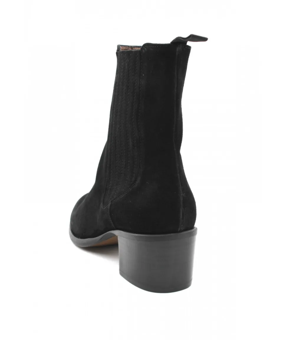 La marque Muratti est de retour cette saison avec cette sublime boots à talon décroché. ROCQUEFORTS S1084F se décline en cuir velours noir pour un look moderne, féminin et ultra-tendance. Son talon de 5 cm vous fera prendre de la hauteur en vous offrant une cambrure idéale pour la journée, tandis que sa tige élastiquée maintiendra votre cheville dans la chaussure.