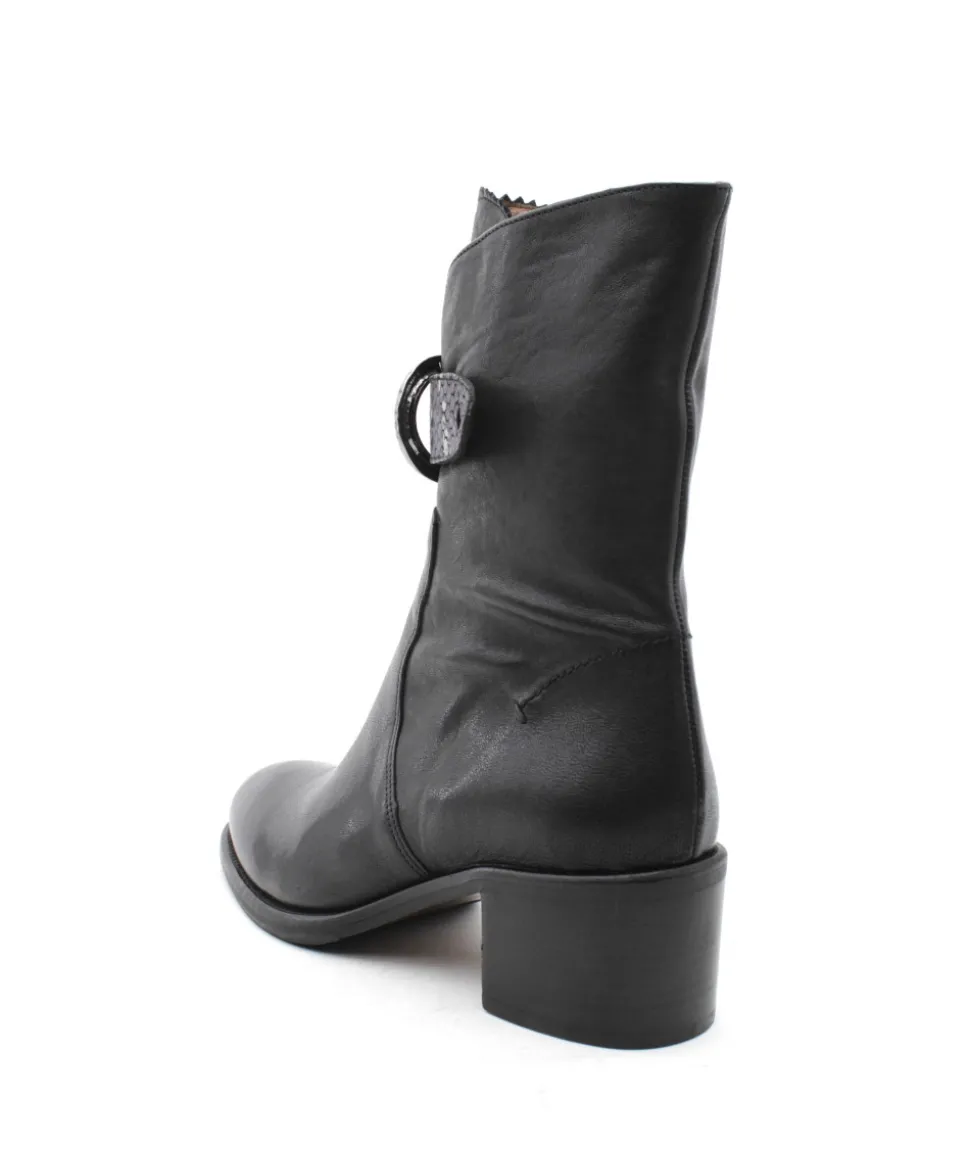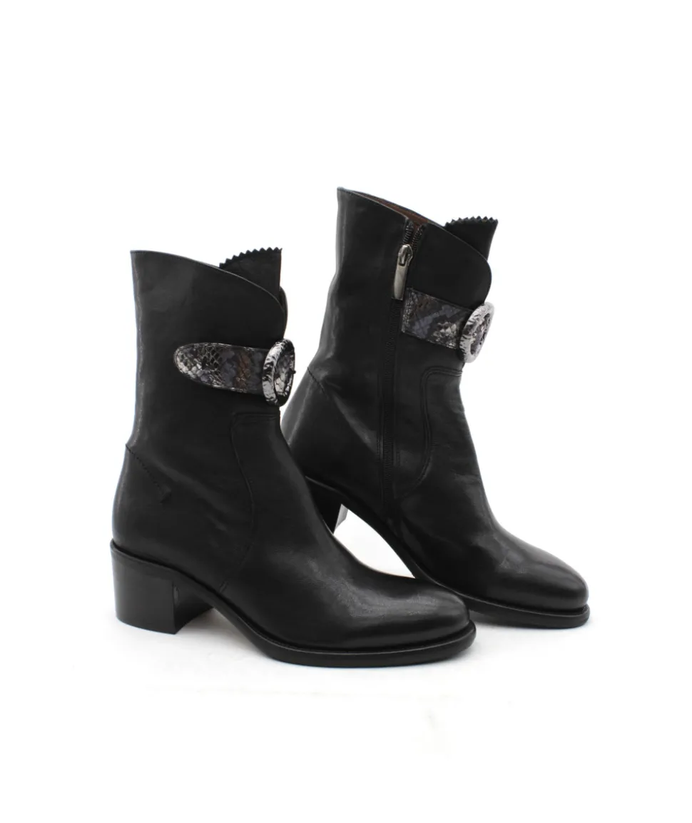 La marque Muratti est de retour cette saison avec cette sublime bottine à talon décroché. ROSUREUX S1254B se décline en cuir noir pour un look moderne, féminin et ultra-tendance. Son talon de 5.5 cm vous fera prendre de la hauteur en vous offrant une cambrure idéale pour la journée, tandis que sa tige s’équipe d’un zip intérieur et d’une boucle décorative pour un look toujours plus original.