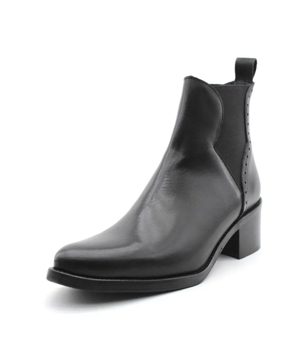 Élégante, chic et indémodable, les bottines 5800/02 en cuir noir de la maison Myma font leurs retour ! Un superbe travail sur les empiècements en cuir au niveau de la tige a été réalisé. On l’aime pour la simplicité qu’elle propose, la praticité d’enfilage des côtés élastiqués et de la hauteur parfaite de son talon. Rien à redire, c’est la paire que chaque femme mérite d’avoir dans son shoesing !